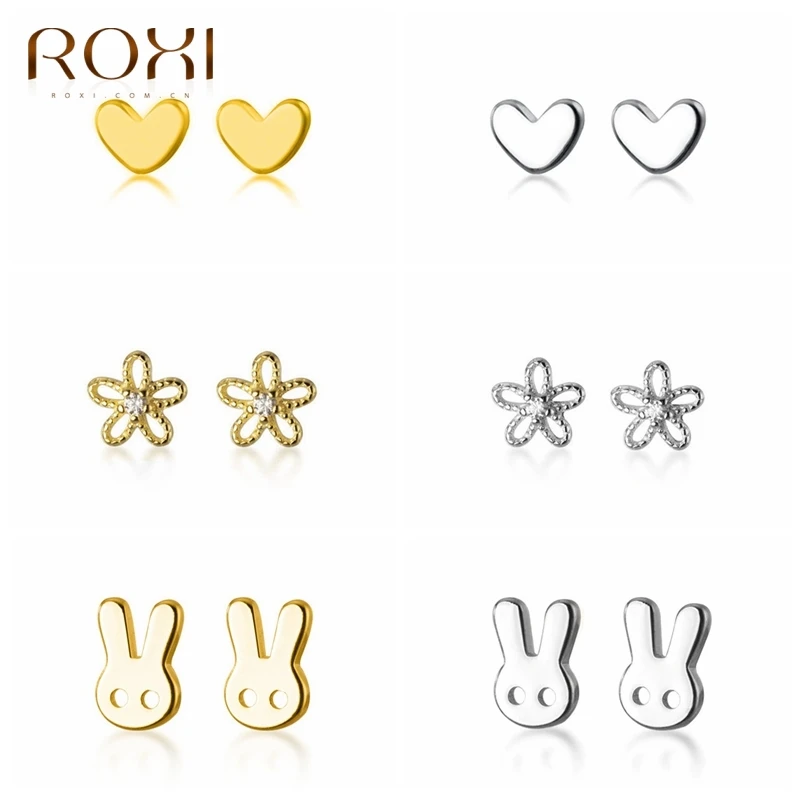 Медные глянцевые серьги-гвоздики ROXI с милым Кроликом, сердцем, цветком для женщин и девушек, подарок на день рождения, милая летняя бижутерия, серьги-гвоздики