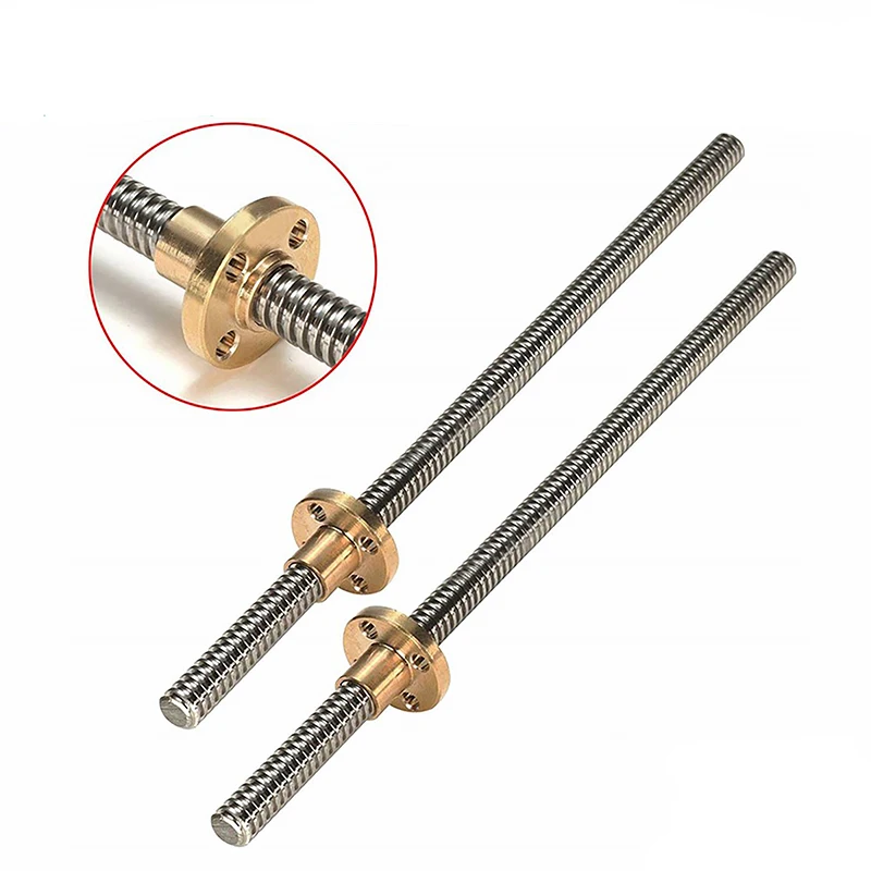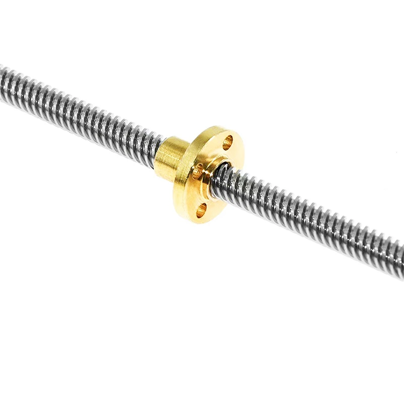 Трапециевидный винт T8 с медной гайкой, шаг 2 мм, свинец 2 мм8 мм, Длина 200 мм400 мм500 мм600 мм1000 мммм