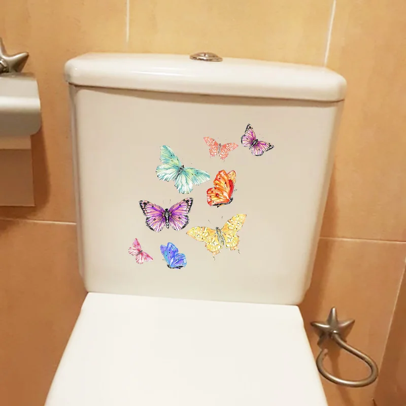 YOJA 21,8 23,7 см Цвет рисованной Мультяшные бабочки детской комнаты настенный Декор Ванная комната Туалет наклейки T1-3224