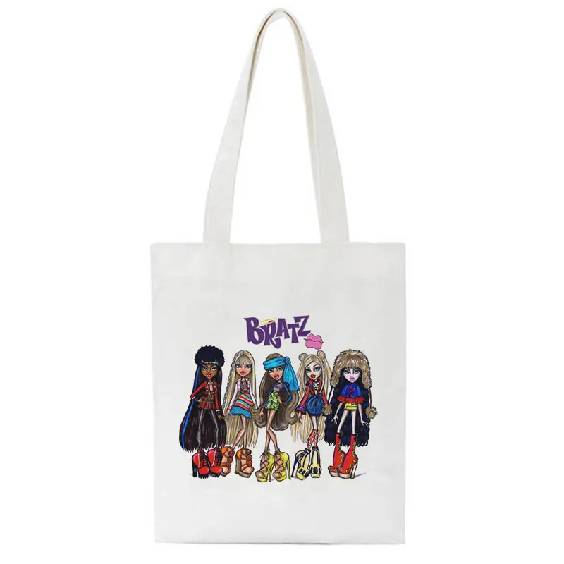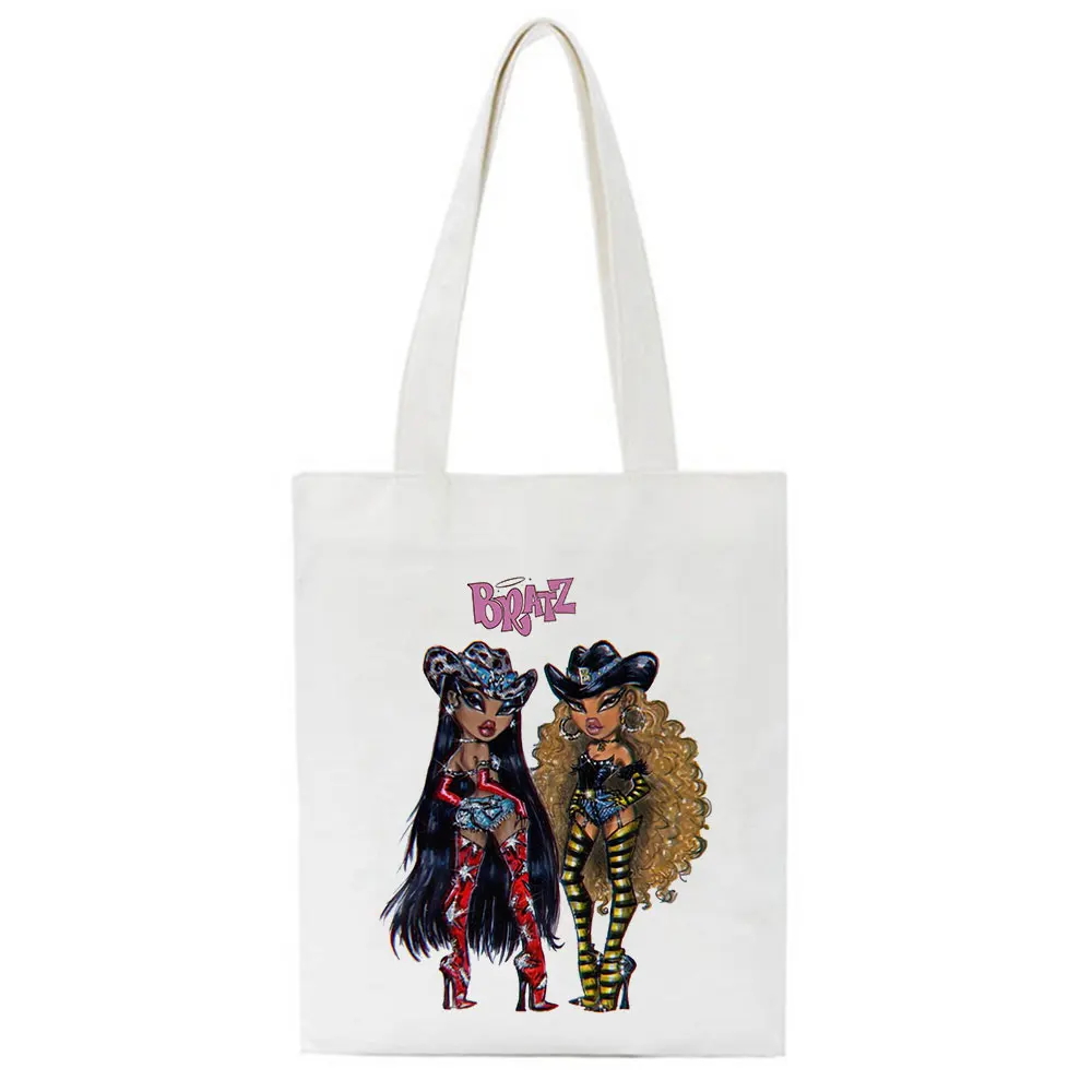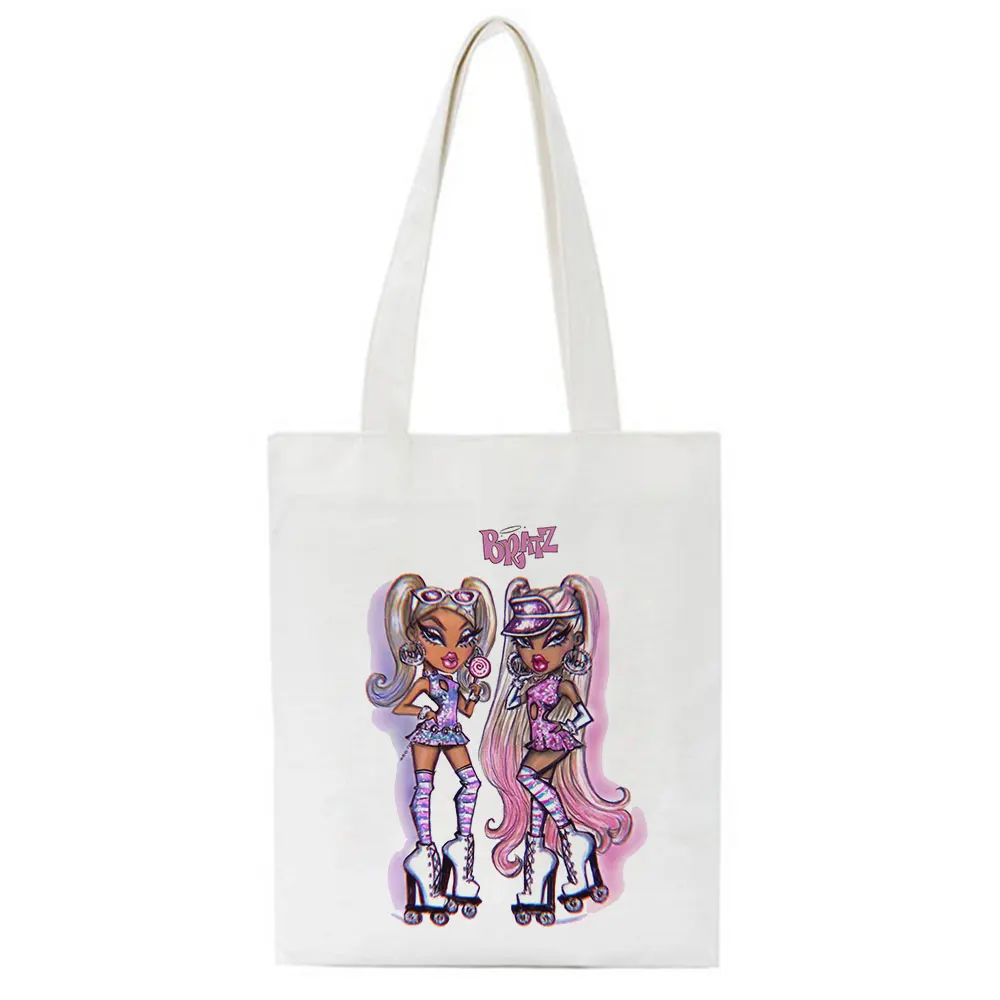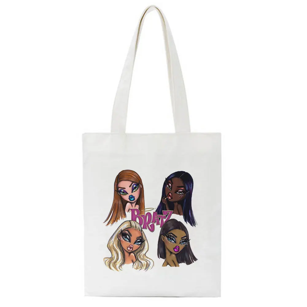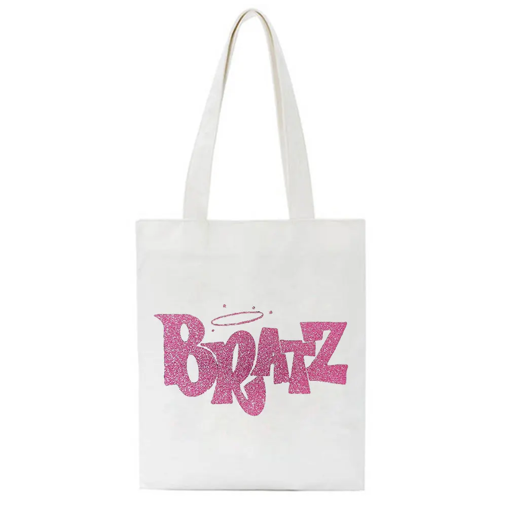 Женская сумка-тоут Bratz в стиле Харадзюку с блестящими буквами, повседневная женская сумка с мультипликационным принтом Kpop, забавная модная Холщовая Сумка на плечо Y2k