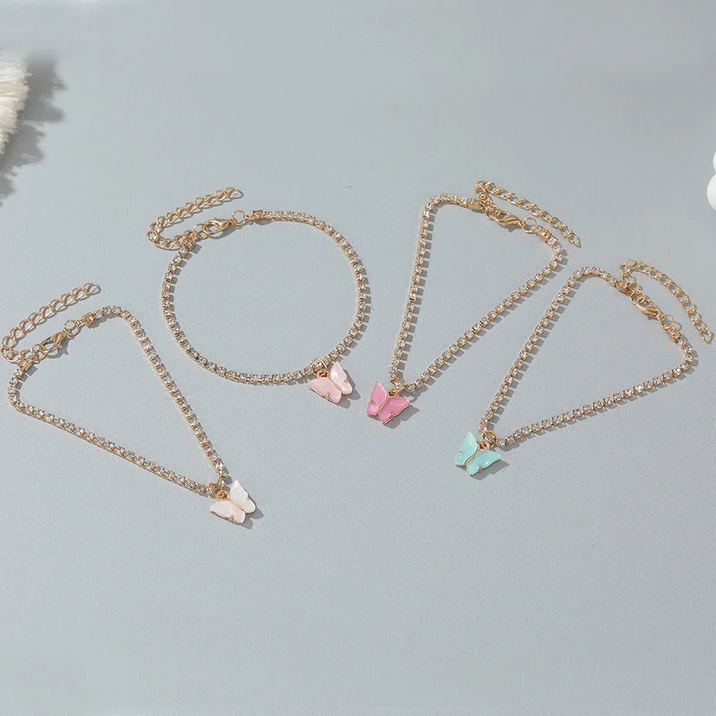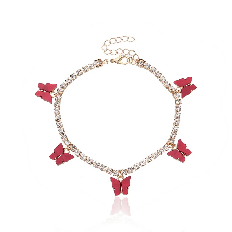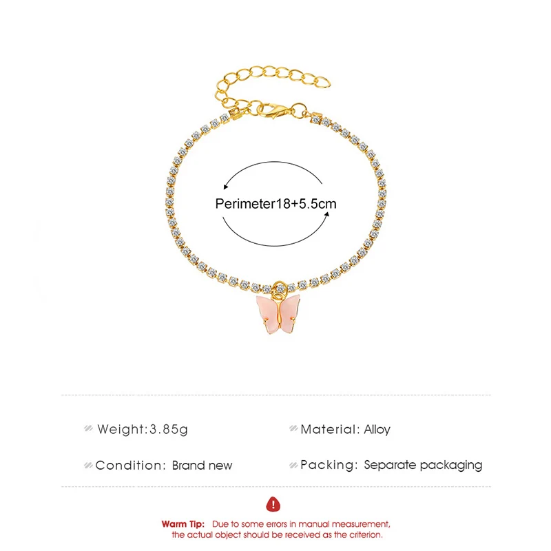 Корейская мода бабочка ножной браслет стразы цепочка для тенниса цепочка для ног Ювелирные изделия для женщин Летний Пляжный ножной браслет бабочка босиком