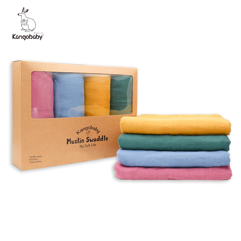 Kangobaby 120 120 см 4 шт. в подарочной коробке, 100% хлопковое дышащее муслиновое Пеленальное Одеяло для новорожденных
