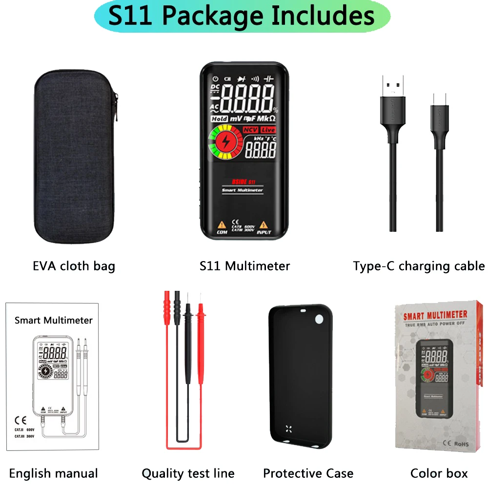 Цифровой мультиметр BSIDE S11, 9999 отсчетов, ЖК-дисплей 3,5 дюйма,...