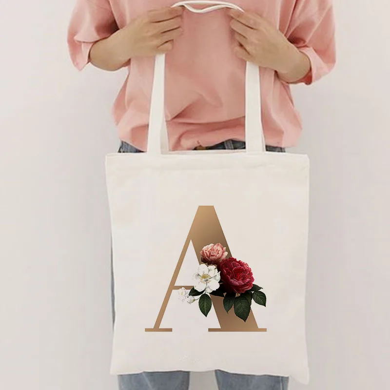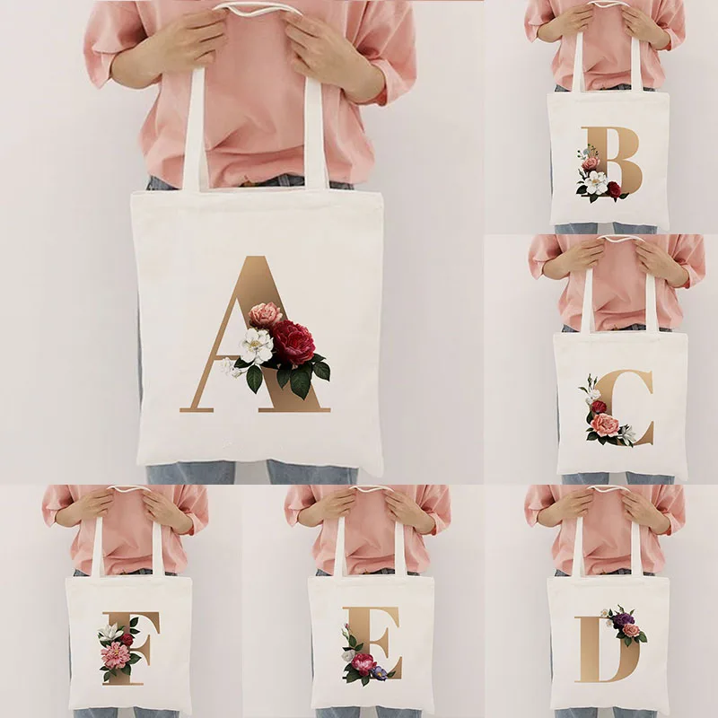 Женские холщовые сумки на плечо, женские повседневные сумки с буквами и цветами, сумки с принтом, дорожные сумки, женские сумки для покупок, эко-многоразовые
