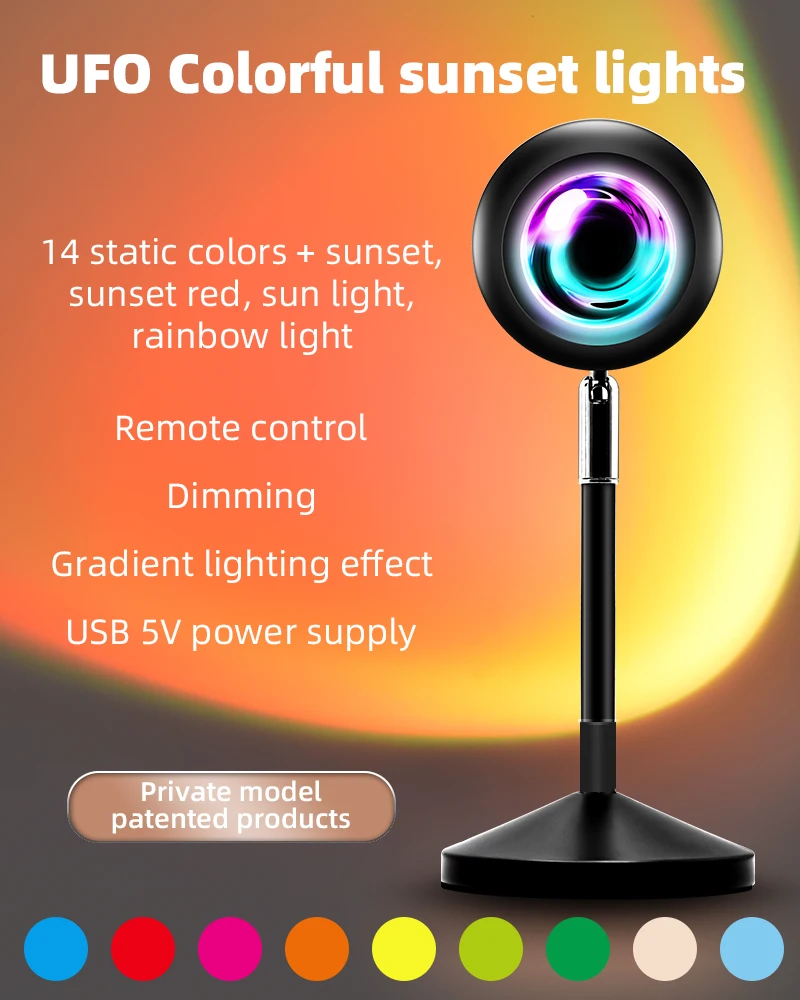 Хит! Светодиодный проектор UFO Sun Sunset, атмосферная RGB лампа, праздничный декоративный ночник с проекцией заката, ночник для прямой трансляции