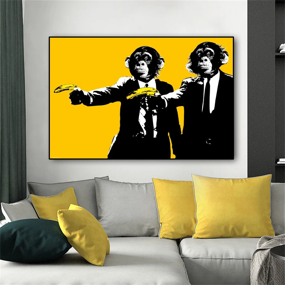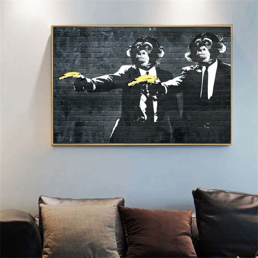 Уличные граффити художественные плакаты и принты на холсте искусство стены абстрактная живопись обезьянка с бананом картинки для Декор в гостиную