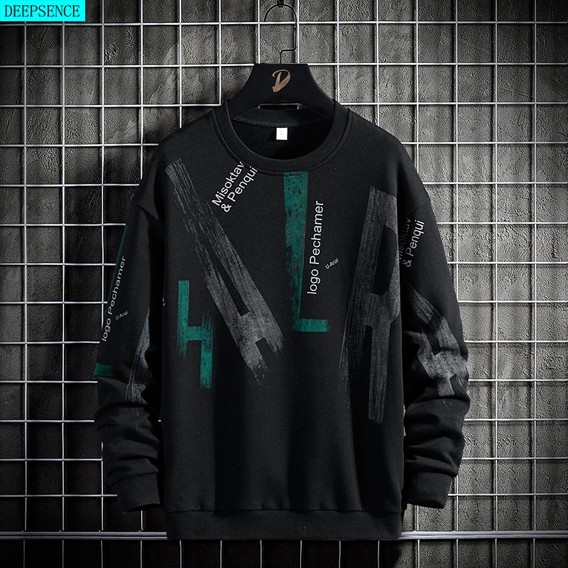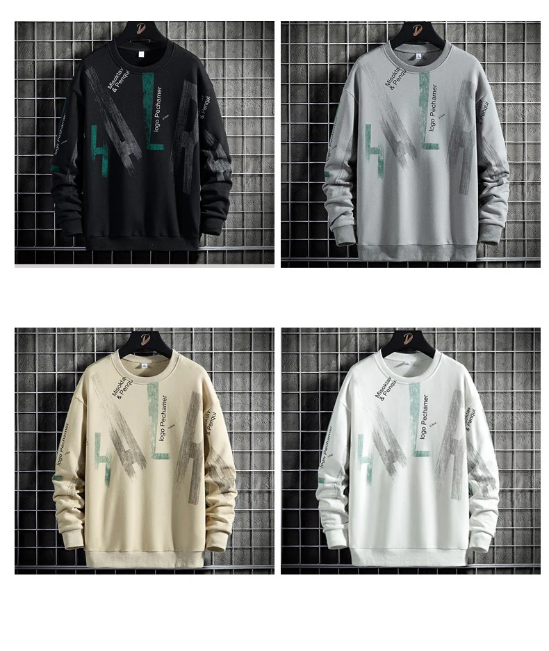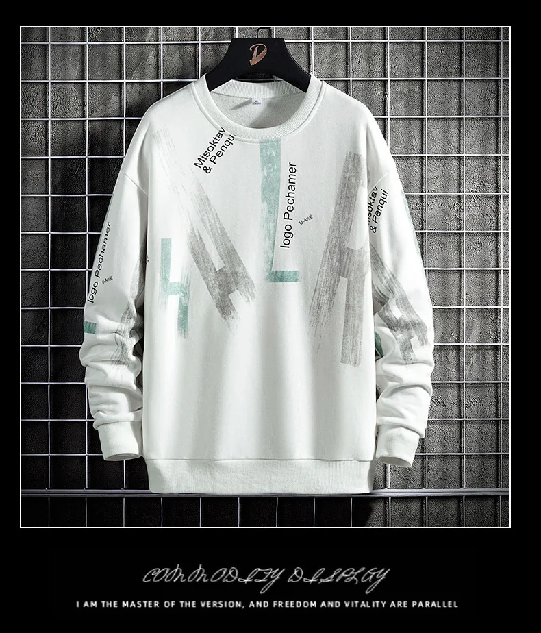 Свитшот мужской с круглым вырезом, корейский топ с принтом в стиле ...