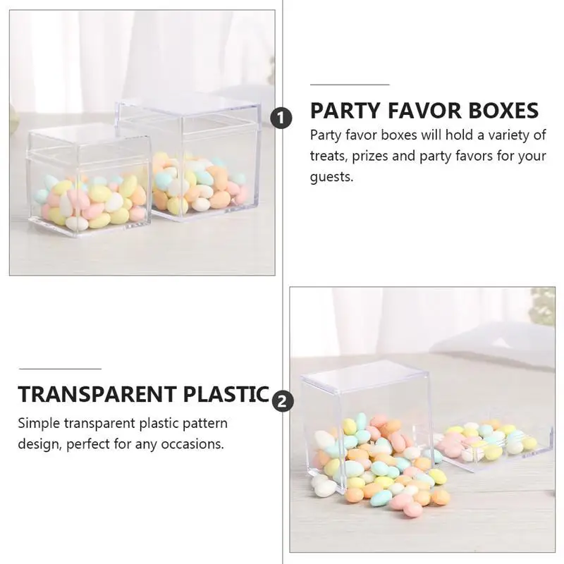 В этих пластиковых коробках используется для упаковки конфет или вкусностей небольшого размера. Отправьте его своей семье или другу. Выражая свою искренность и любовь своему возлюбленному, вашей семье или друзьям. Отлично подходит для Рождества или дня рождения или свадьбы, вечеринки в честь рождения ребенка, девичника или любой другой праздничной вечеринки.