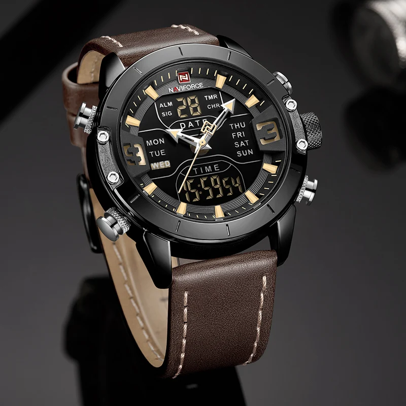 Часы NAVIFORCE Мужские кварцевые, модные брендовые спортивные водонепроницаемые в стиле милитари, с двойным дисплеем