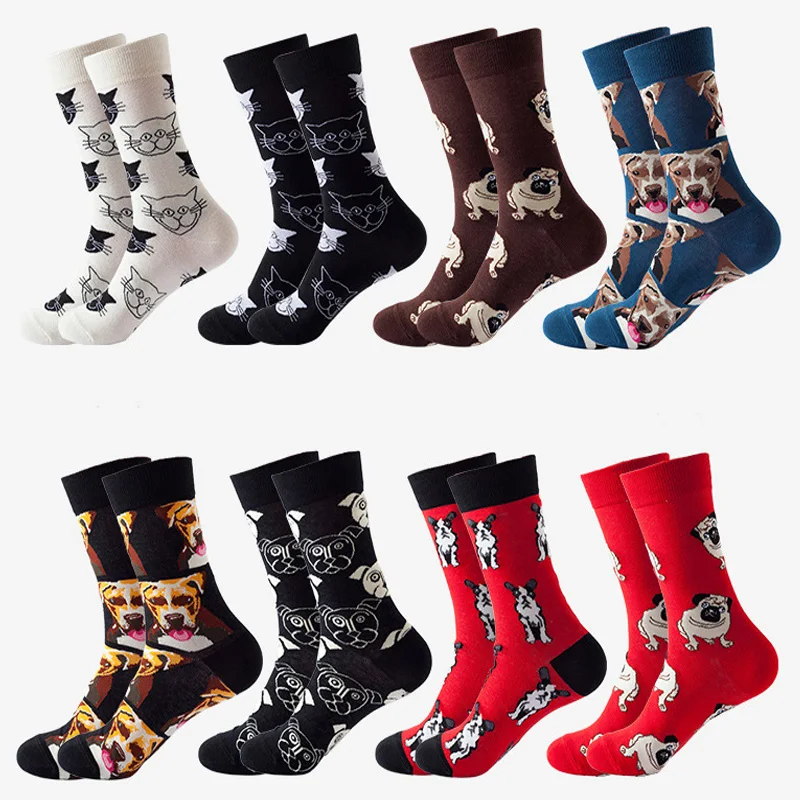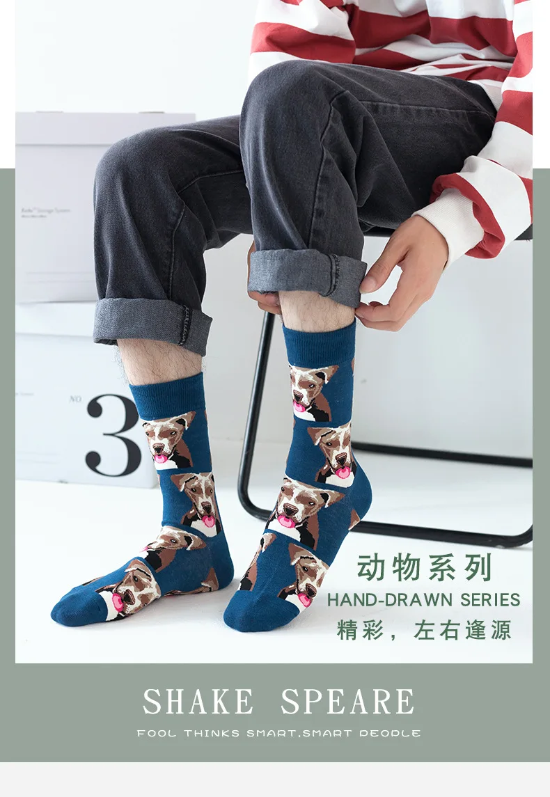 Мужские носки из чесаного хлопка с мультяшным принтом, новинка, Классические носки, хлопковые носки с веселыми забавными животными в стиле Харадзюку