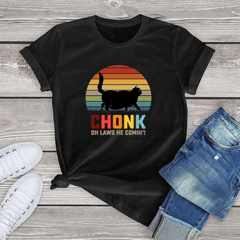 Забавная футболка с котом Chonk женская одежда 2021 новый дизайн 100 хлопок harajuku Meme Cat Футболка мужские и женские мягкие футболки модные женские топы 3xl