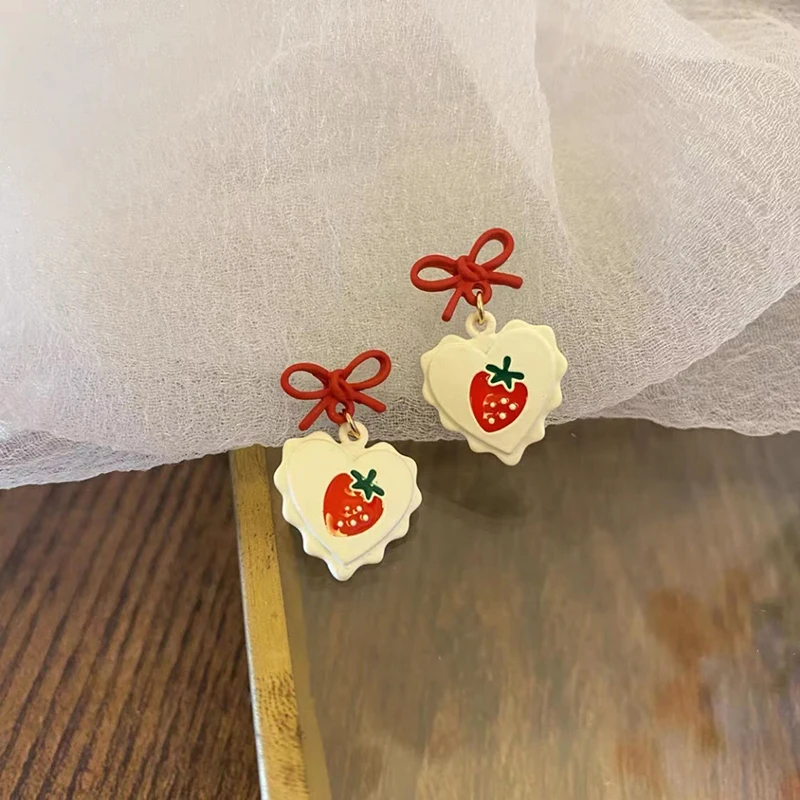 Женские серьги с красным бантом, серьги-подвески с фруктами, клубникой, в форме сердца, милые ювелирные украшения для ушей, весна-лето 2021