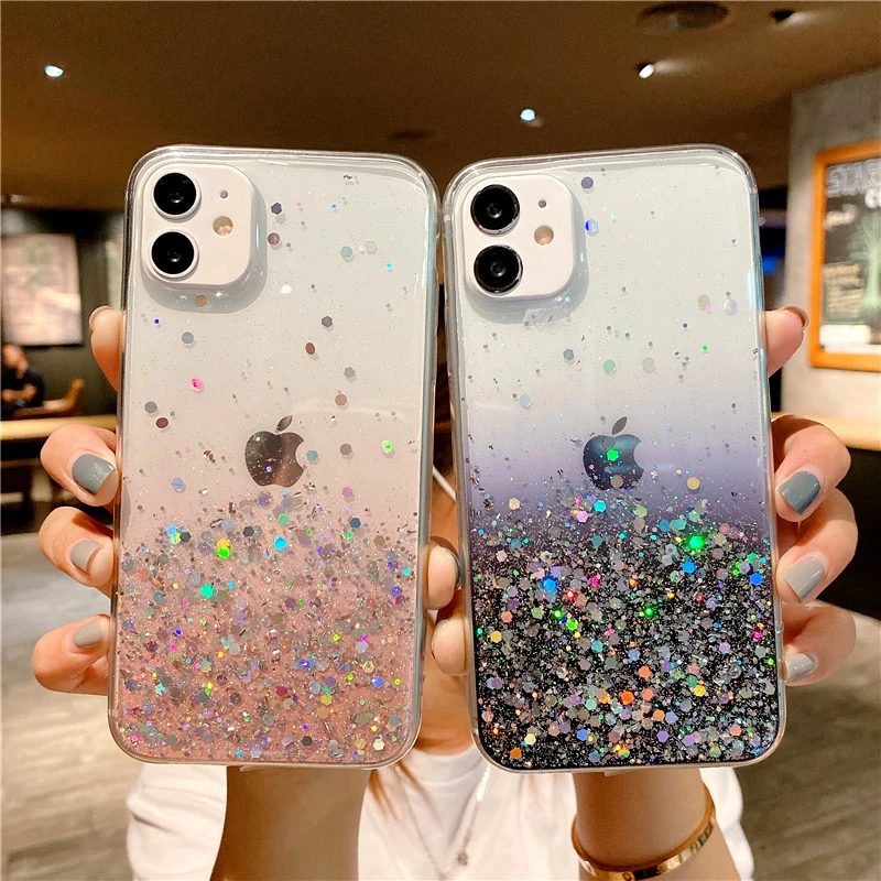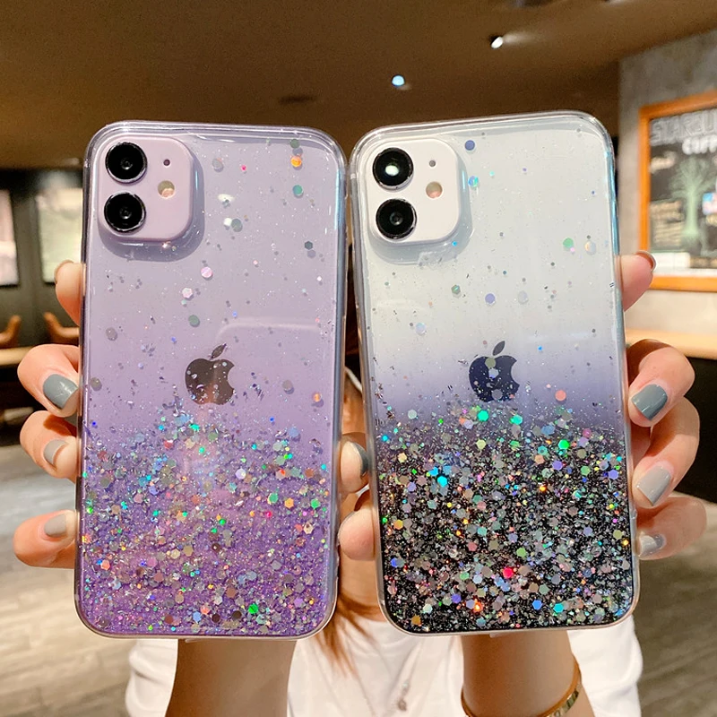 Блестящий яркий чехол карамельных цветов для телефона iPhone 7 8 Plus 11 12 Pro Max 12 Mini X XR XS Max SE 2020, прозрачный мягкий чехол из ТПУ