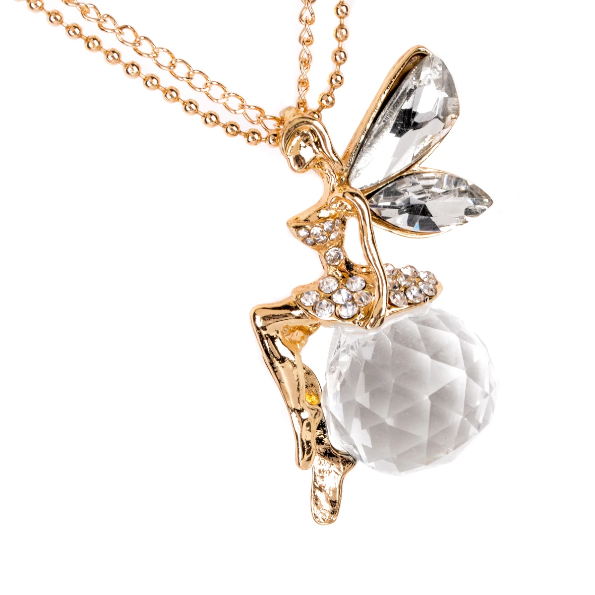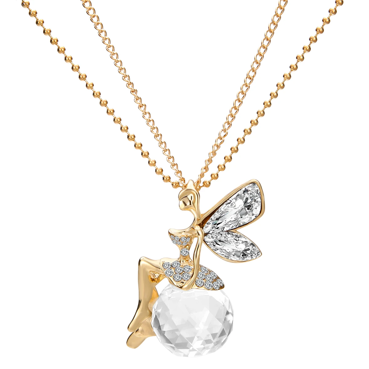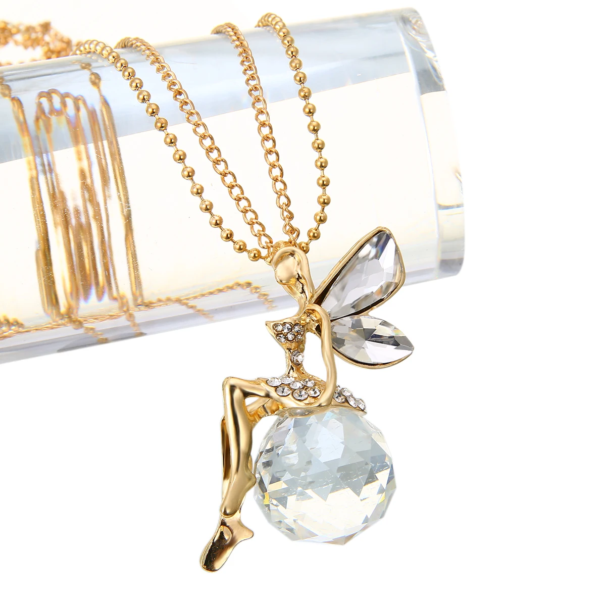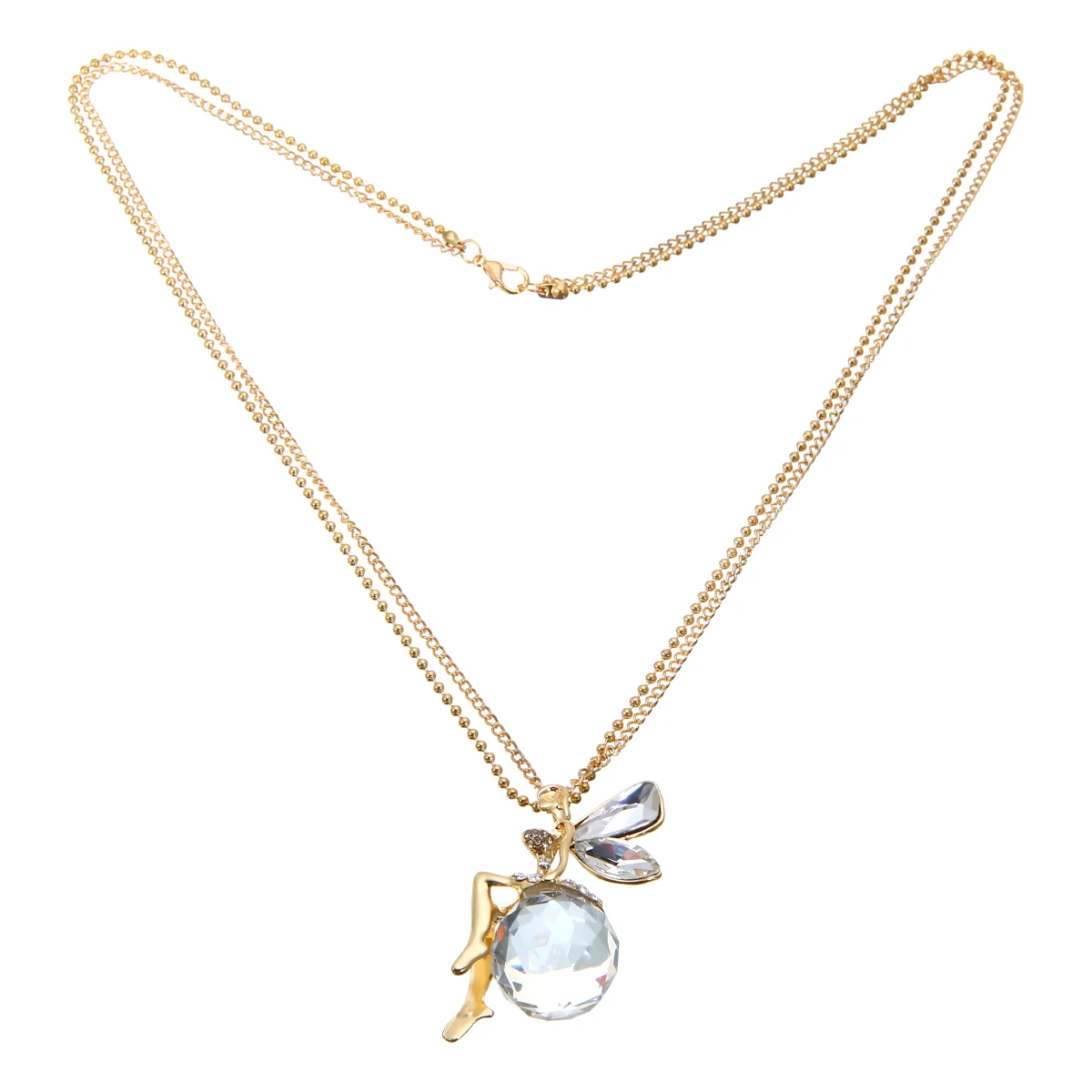 Женское Ожерелье с крыльями ангела, с кристаллом, длинная цепочка, ...