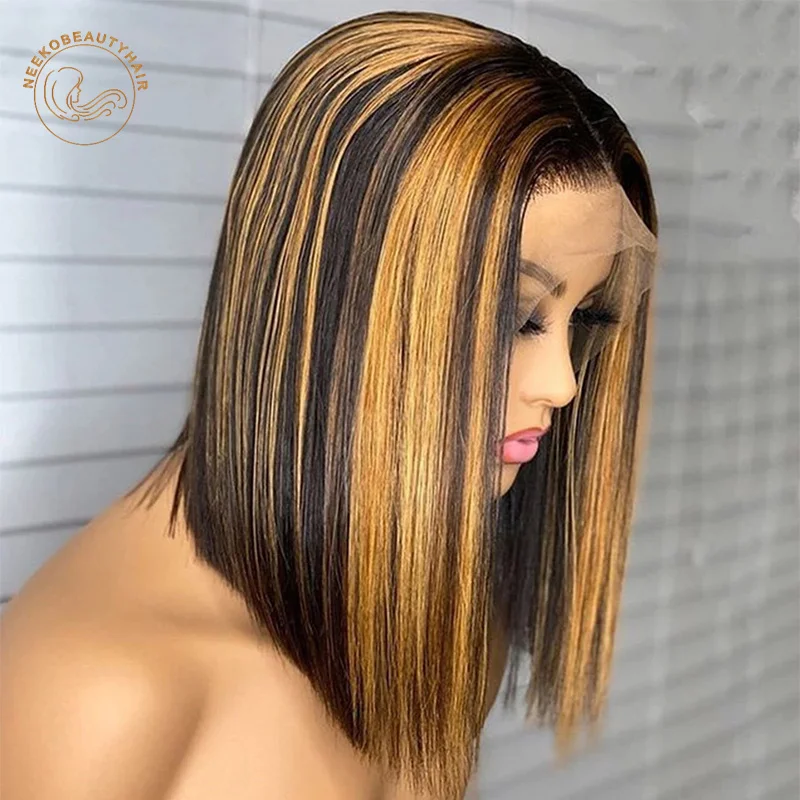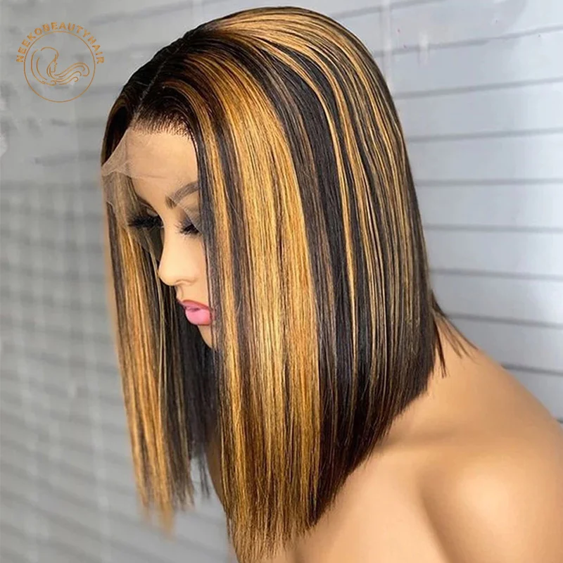 Парик с сетчатой фронтальной линией имбирный Боб 13X4, окрашенные н...