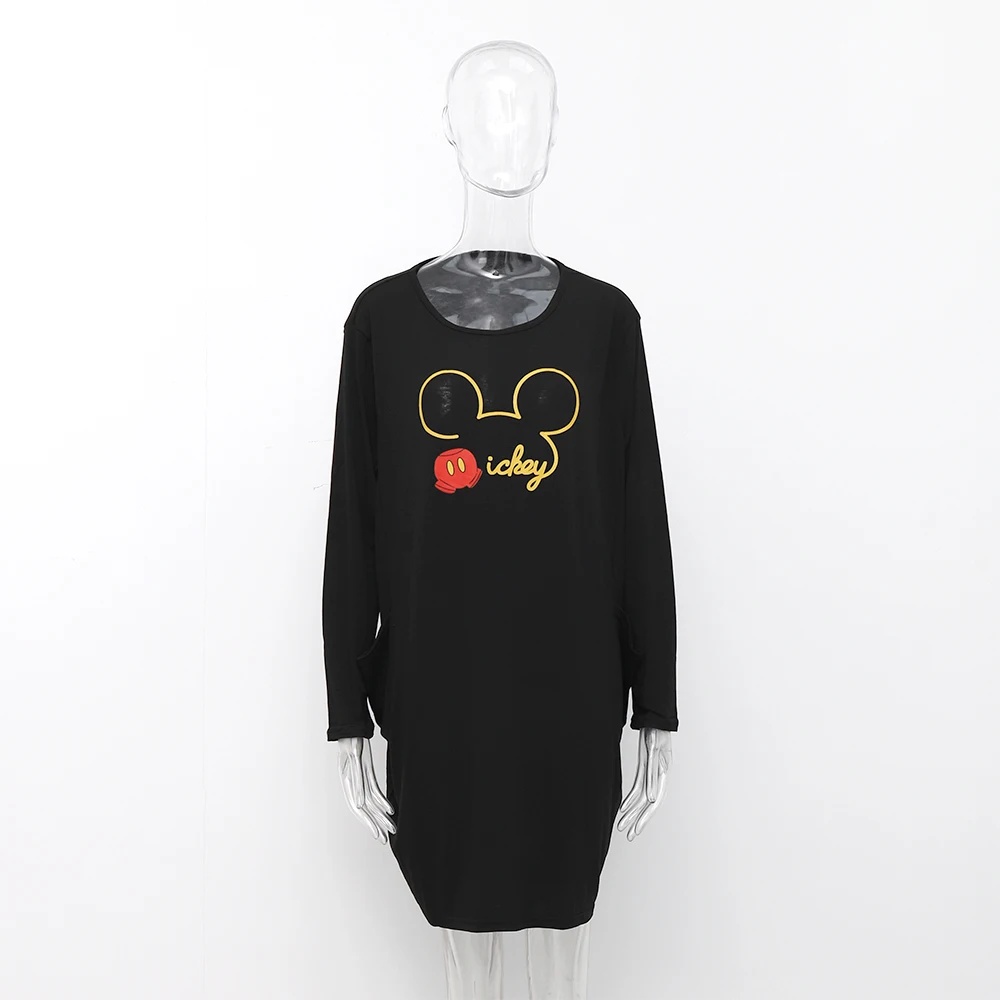 Винтажное женское платье Микки Маус, простой принт, карманы, свободный длинный рукав, винтажное вечернее повседневное миди-платье, женская одежда