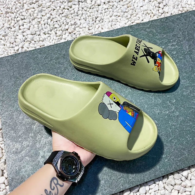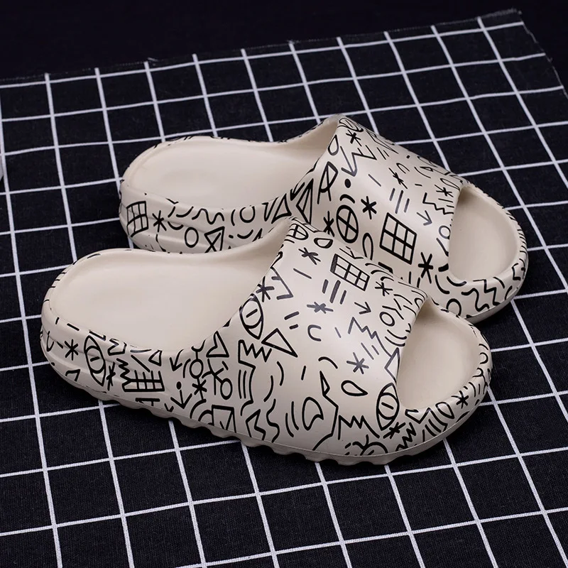 Летние мужские шлепанцы; Крутой нескользящий светильник; Пляжные повседневные шлепанцы; Вьетнамки с открытым носком и граффити; Женские сандалии; Мягкие EVA