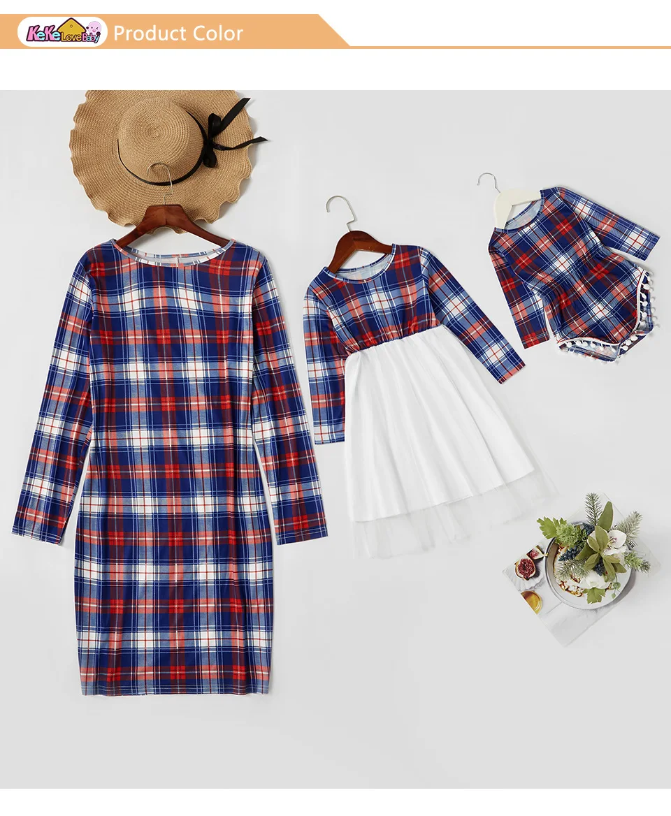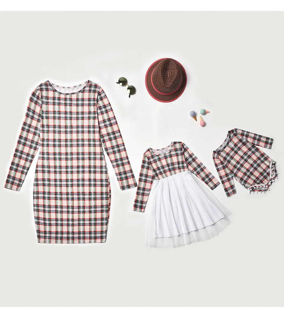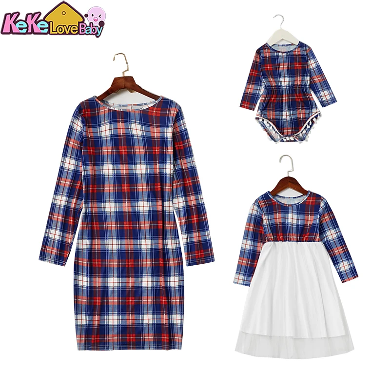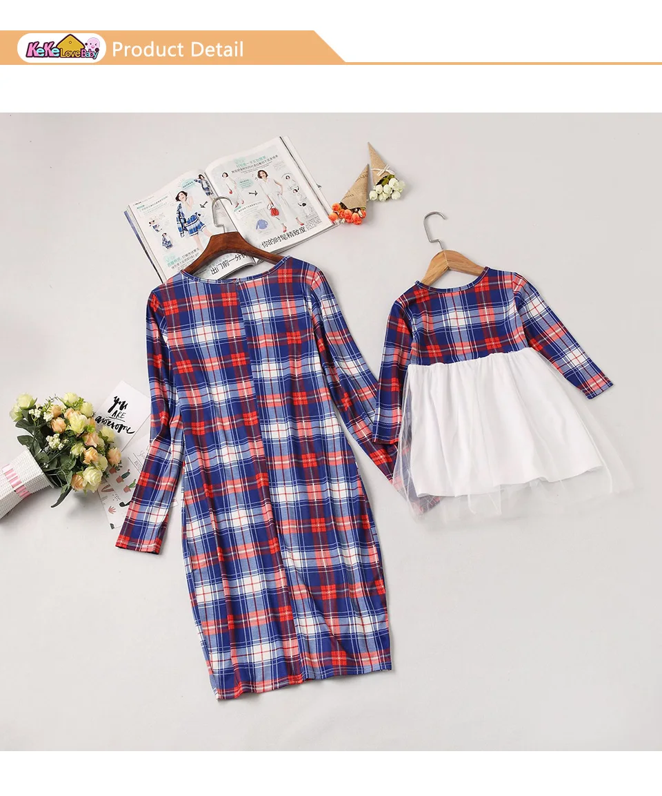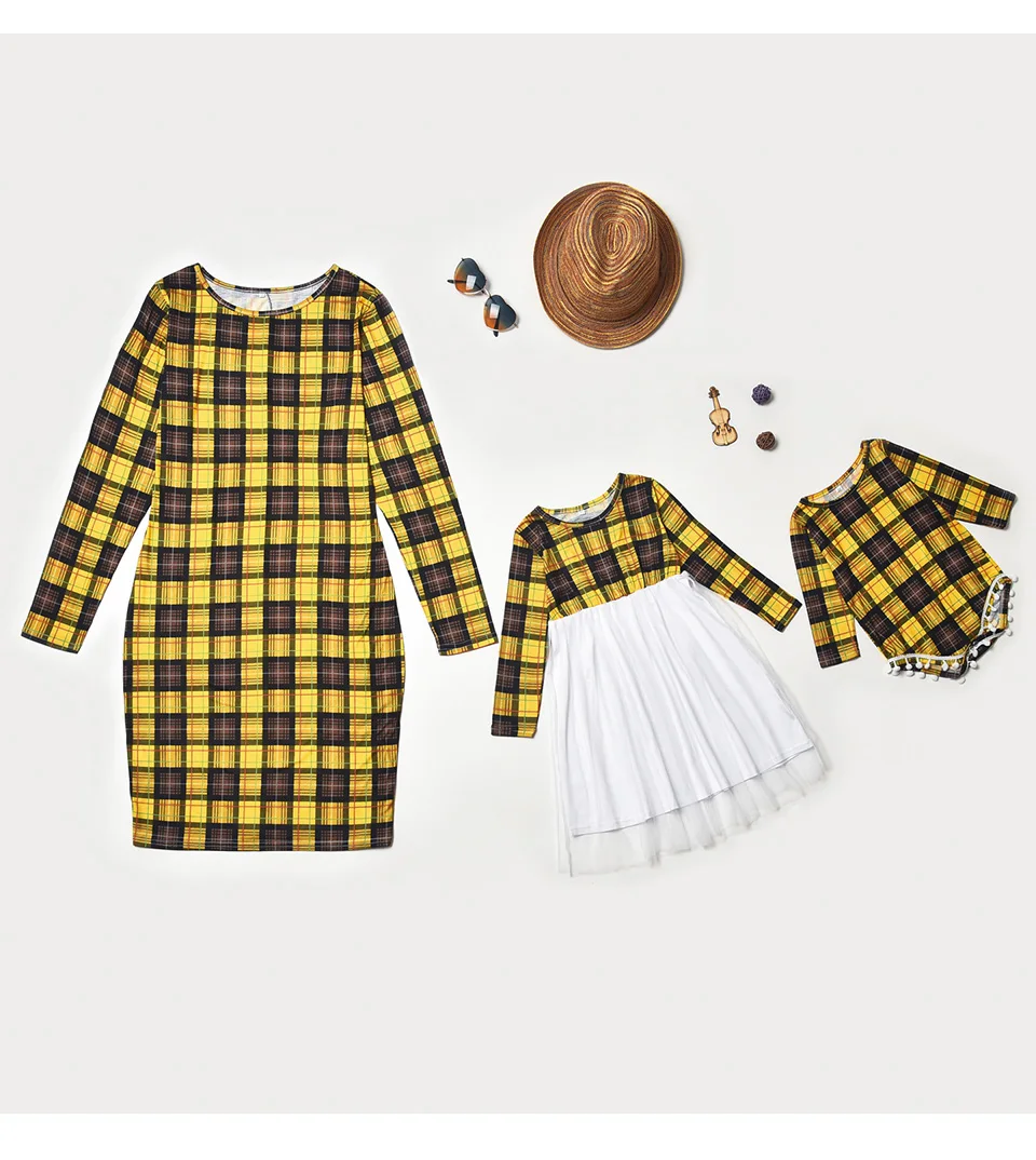 Наряды для мамы и дочки, платья для маленьких девочек, Сетчатое клетчатое платье принцессы с длинным рукавом для семьи, осенняя одежда для мамы и ребенка