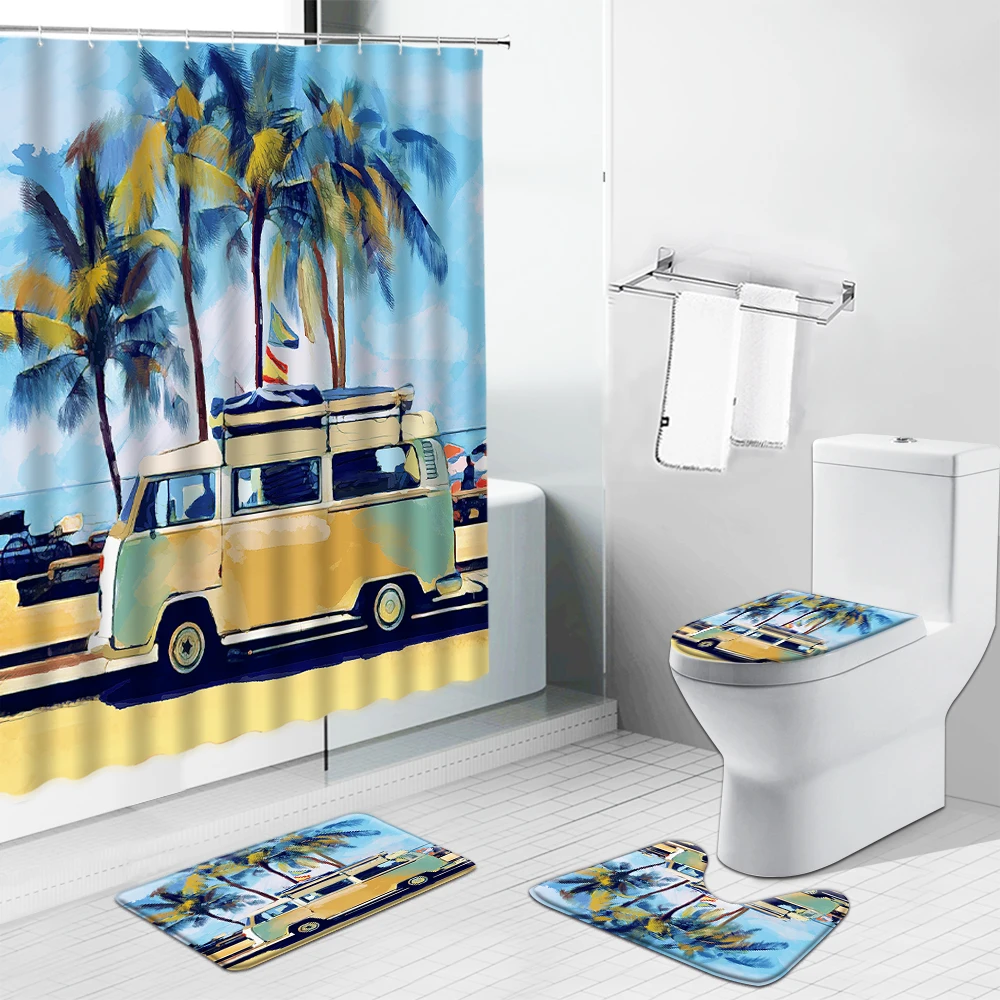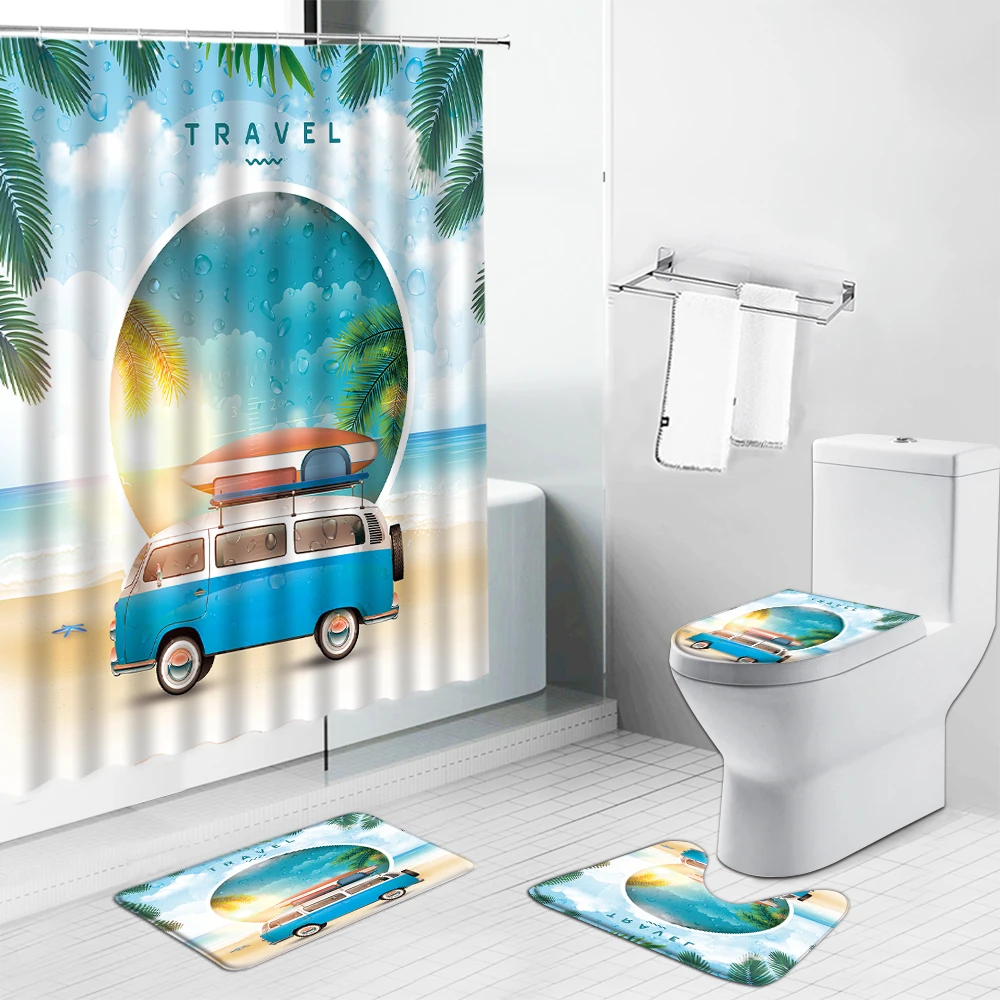 Занавеска для душа с рисунком океана, набор с ковриком для ванной, ...