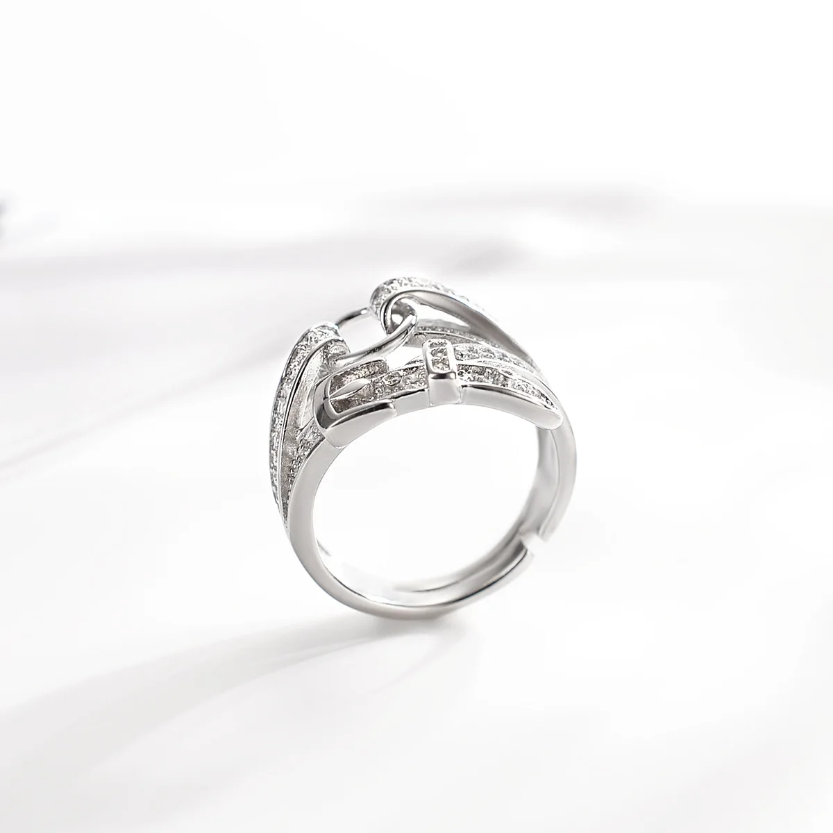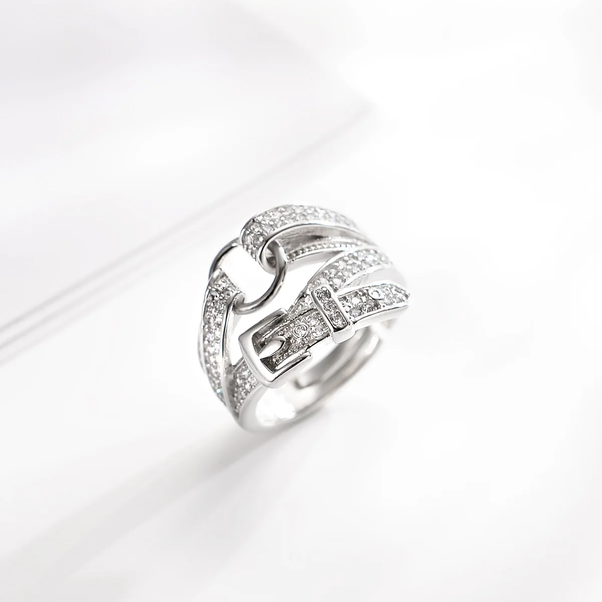 Кольцо унисекс, с посеребренным покрытием и блестящими кристаллами