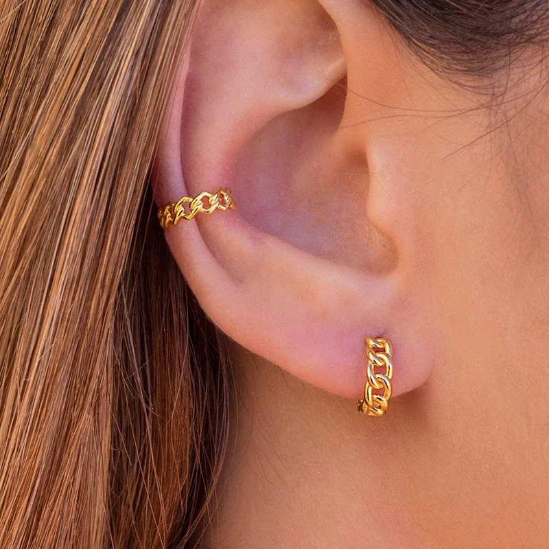 Серебро 925 пробы, застежка для ушей, маленькая большая цепочка, кольца, Женская Минималистичная бижутерия в стиле рок, панк, простые толстые украшения, круглая ажурная подвеска