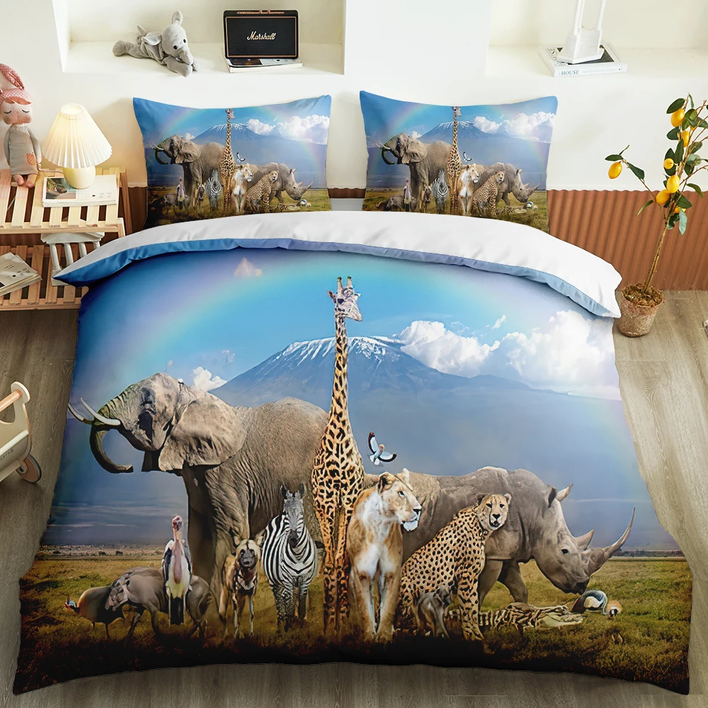 Комплект постельного белья с животными из джунглей, с 3D принтом, Q...