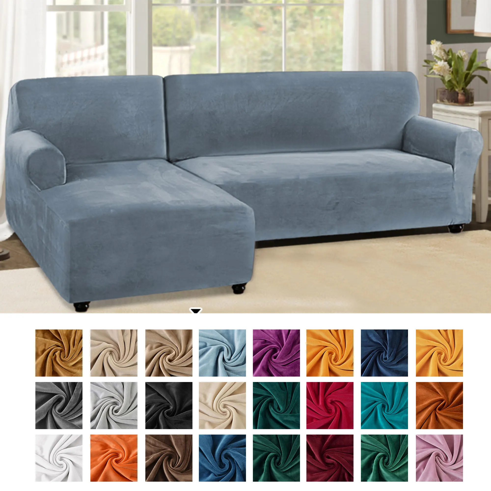 Эластичные Плюшевые Чехлы для дивана в гостиную, бархатная мебель L-образной формы для углового кресла, мебели для 2 и 3 места