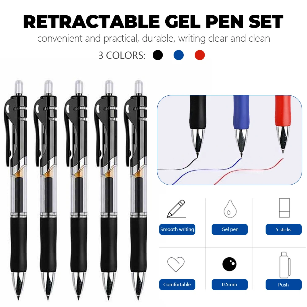 5 шт. 0,5 мм Выдвижной Гелевая ручка, в черном цвете, Синее и красное цвет.