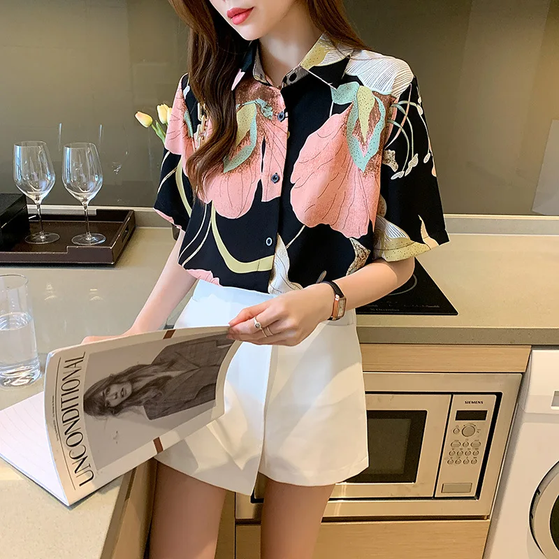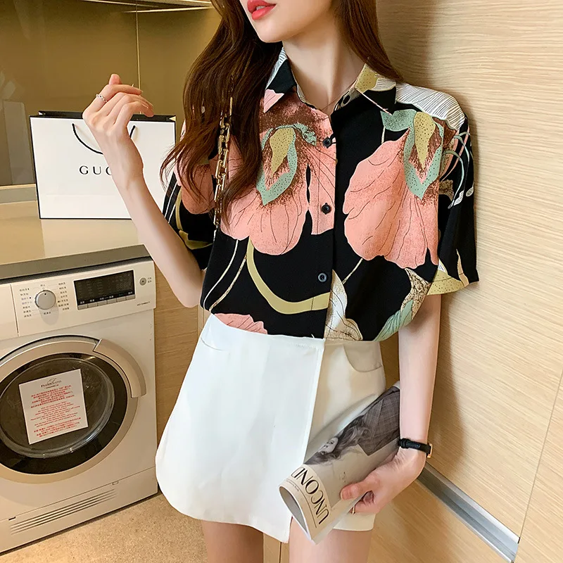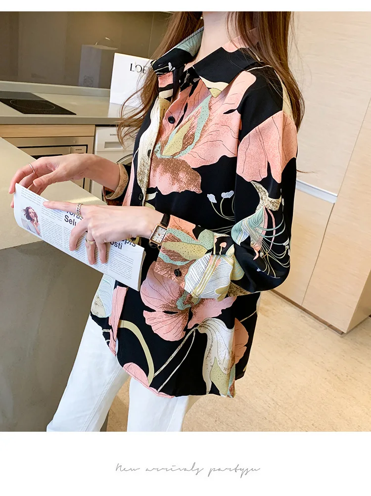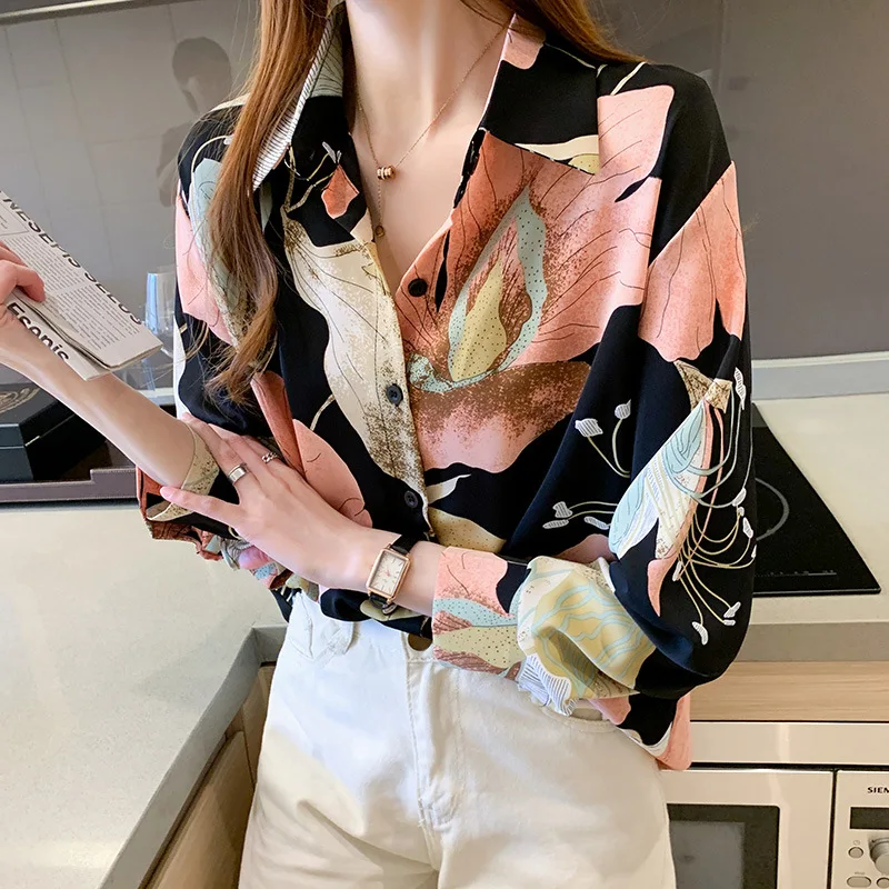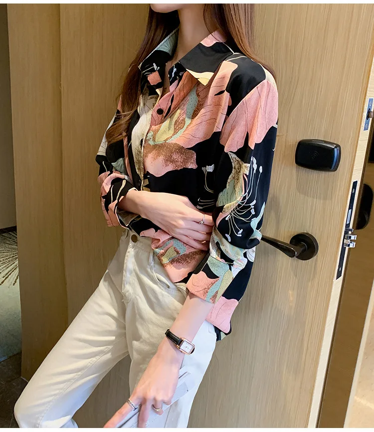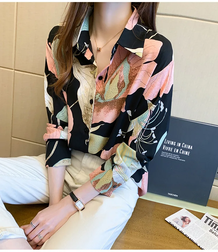 Женская шифоновая рубашка, легкая однобортная рубашка с длинным рукавом и V-образным вырезом, в Корейском стиле, для лета, 2021