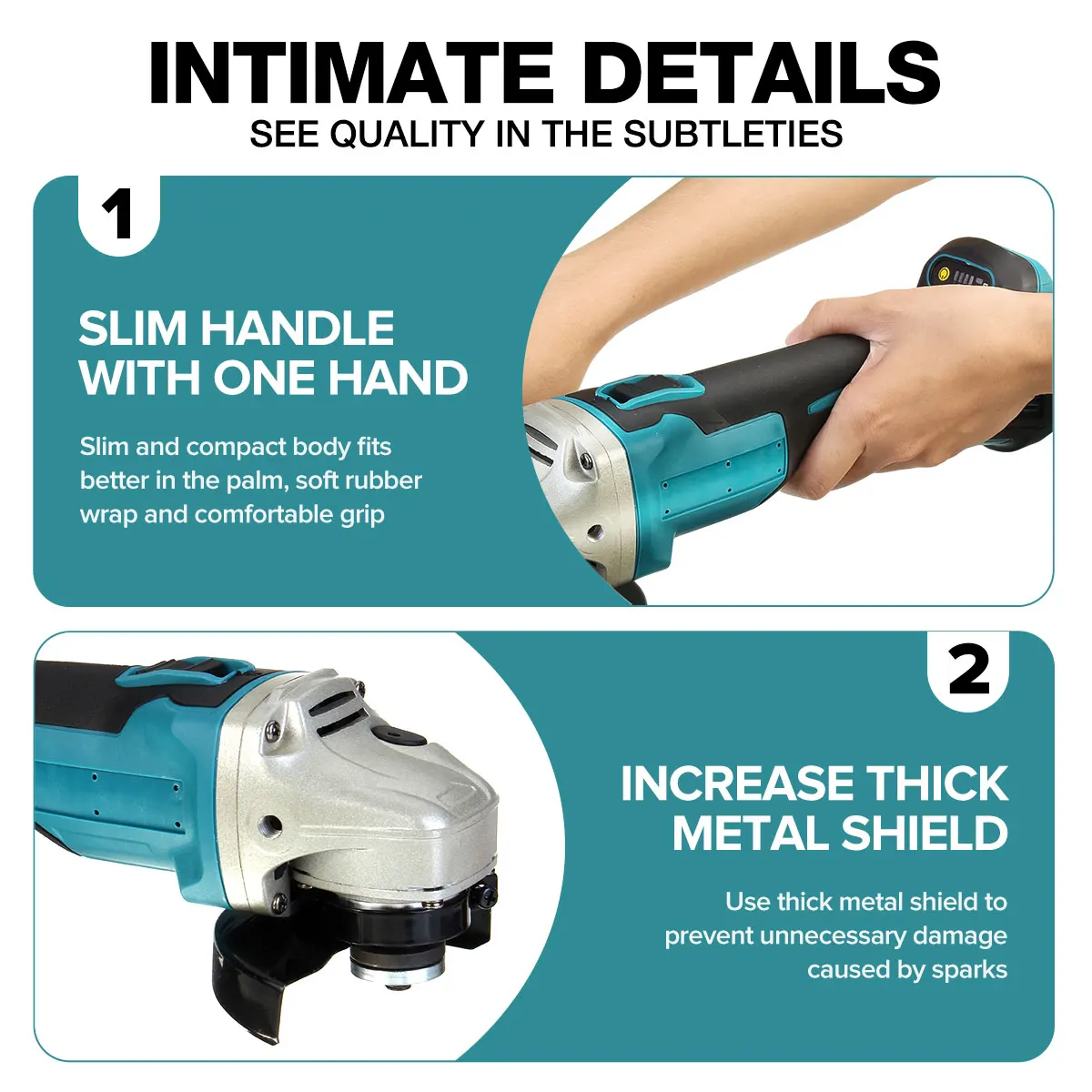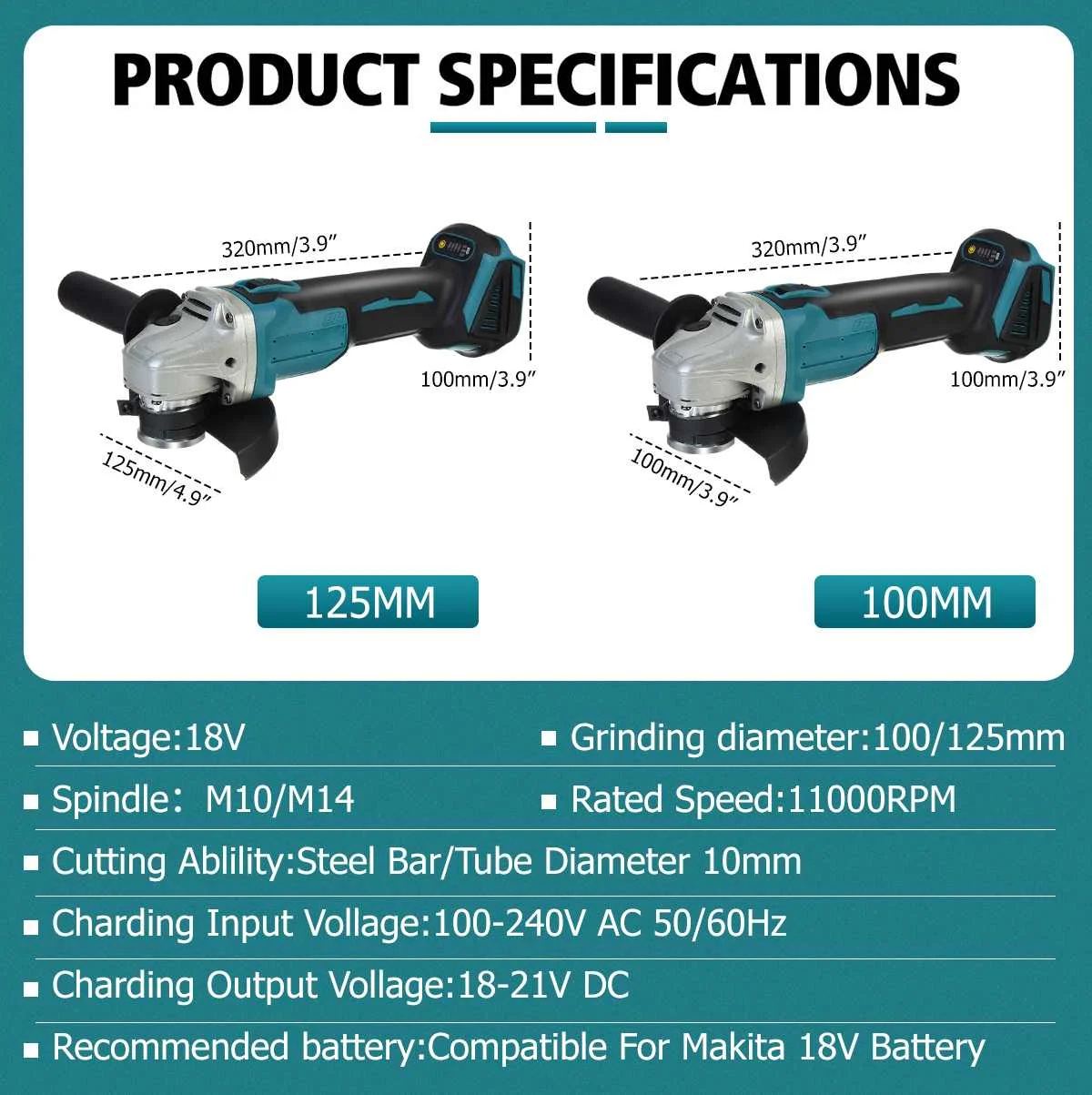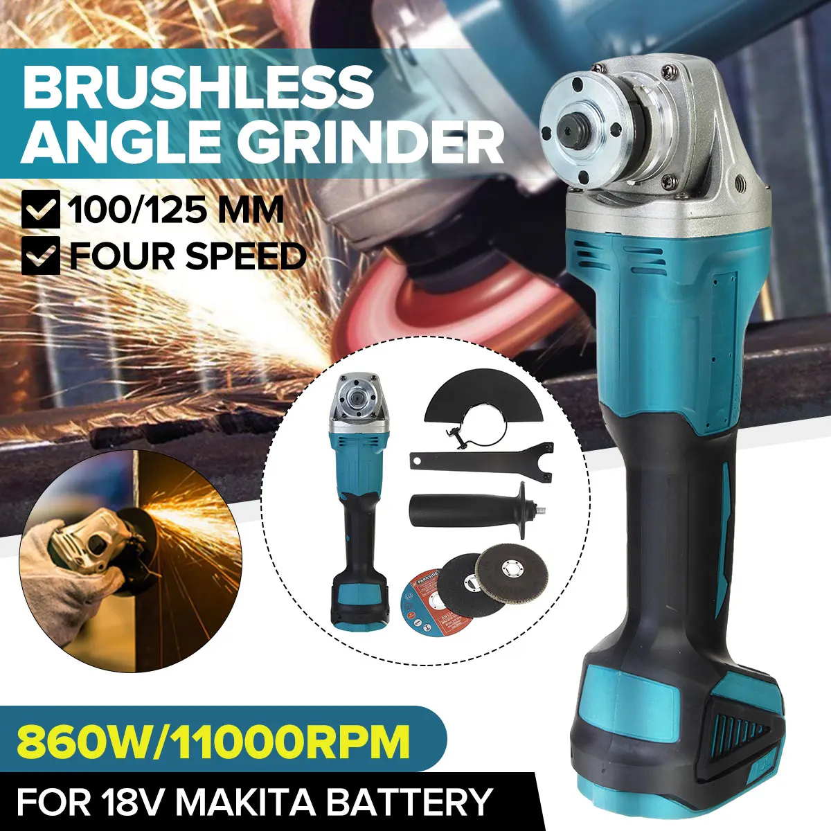 4-скоростная бесщеточная электрическая угловая шлифовальная машина, беспроводной деревообрабатывающий Электроинструмент 100 мм 125 мм, шлифовальная машина для батареи Makita 18 в