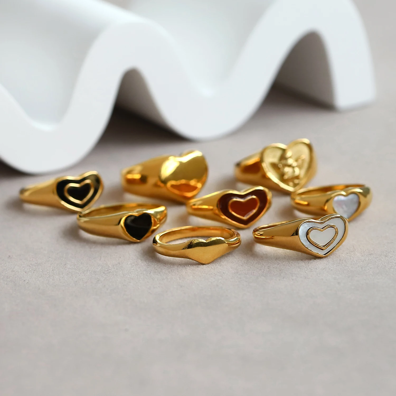 Женские кольца в форме сердца, из нержавеющей стали 316L, с позолот...