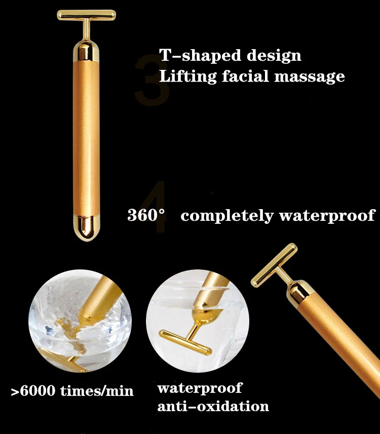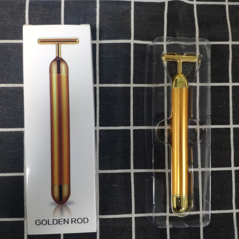 24k золотой вибрирующий роликовый массажер для лица T-образный энергетический косметический ролик для подтяжки лица и подтяжки кожи массажный ролик против морщин