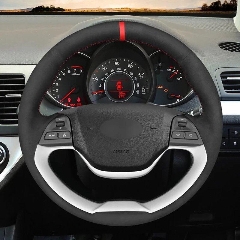 DIY чехол рулевого колеса автомобиля красный маркер из замши для Mi...