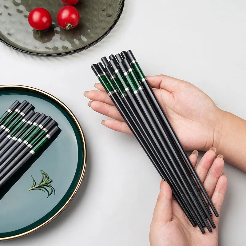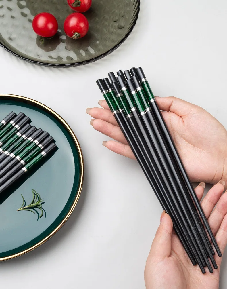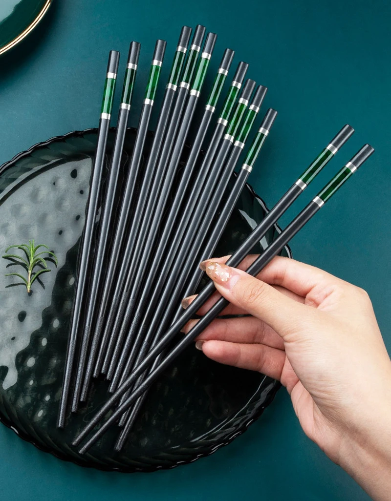 10 пар в комплекте; Китайская палочка для еды из металлического сплава изумрудно-зеленый Non-slip палками посуда набор палочек для еды Ресторан семейный Кухня инструмент