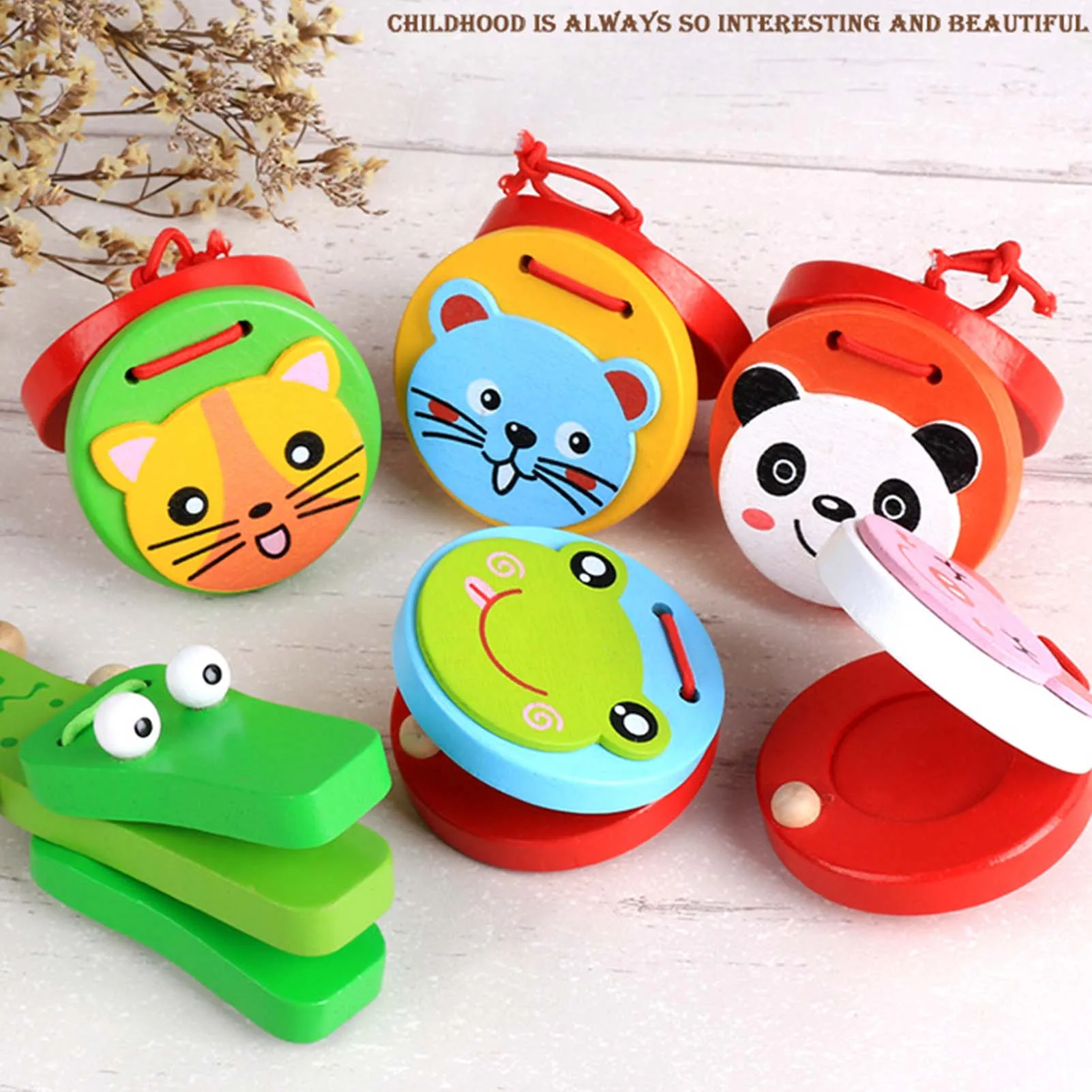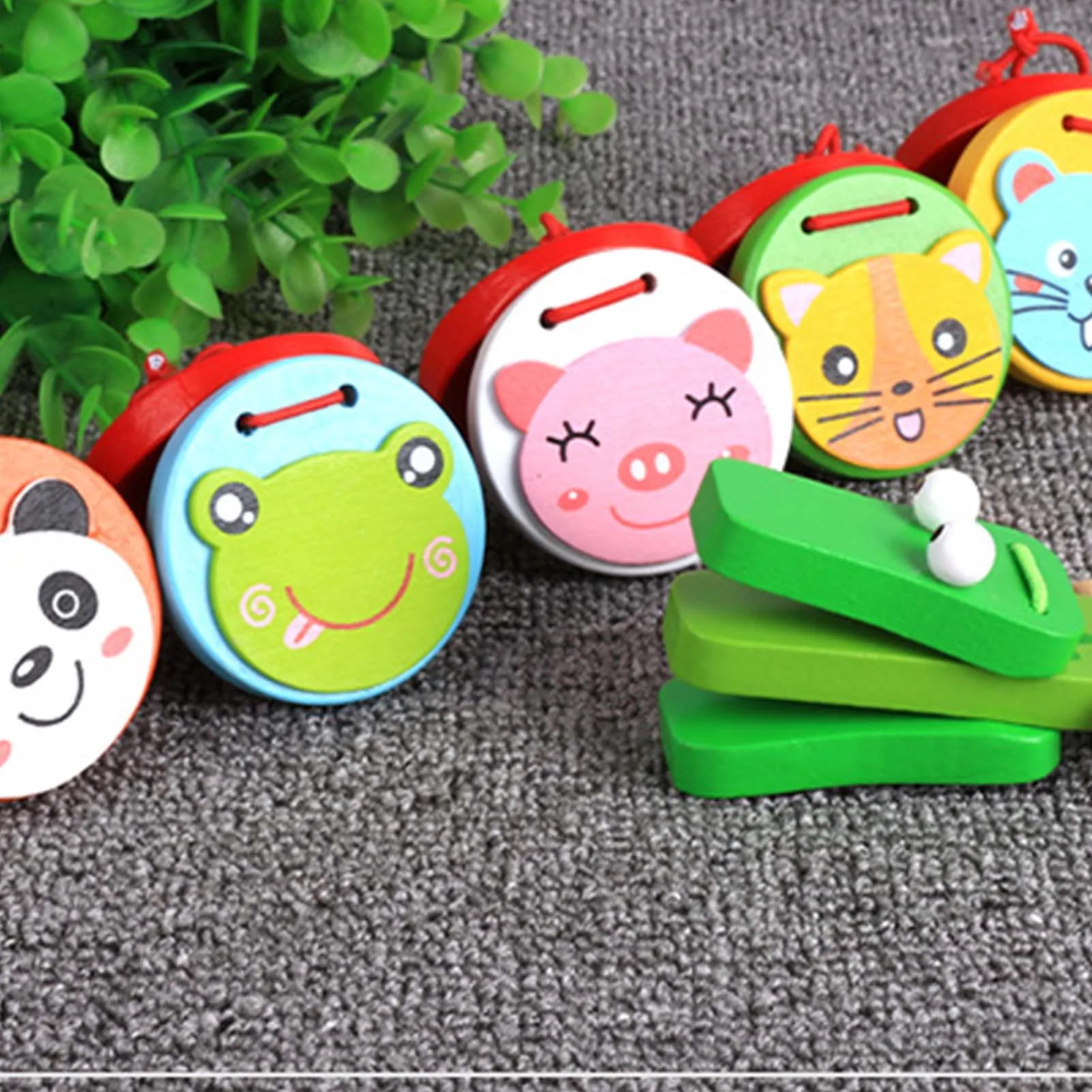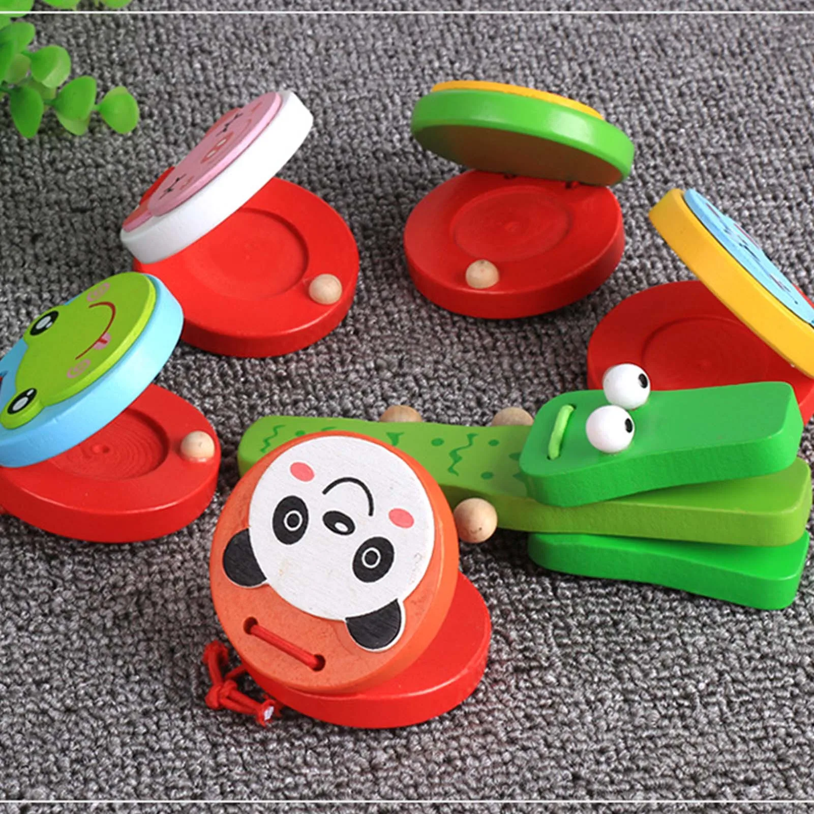 Детские Мультяшные деревянные кастаньеты, музыкальные инструменты, ...
