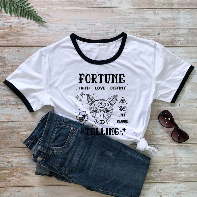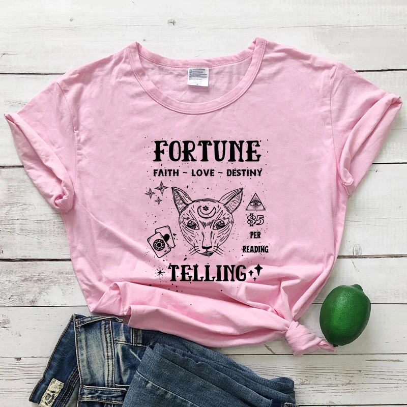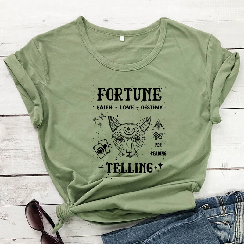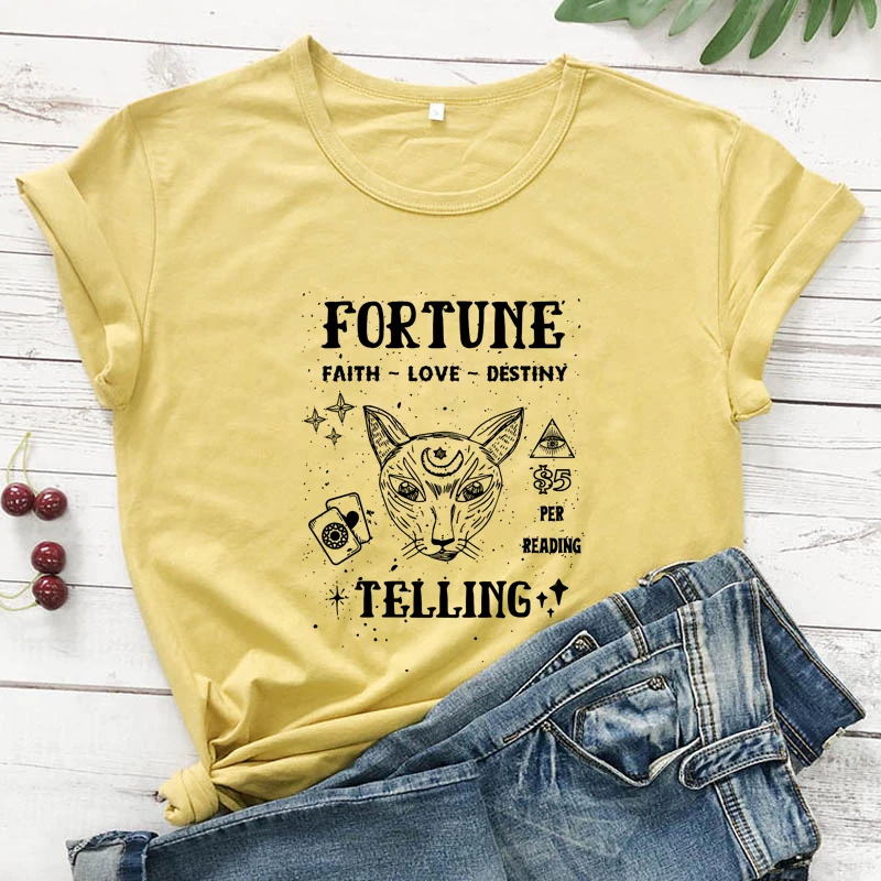 Футболка женская с коротким рукавом, топ с рисунком ведьмы, в ретро стиле, с рисунком кота и мамы, подарок, Fortune Telling