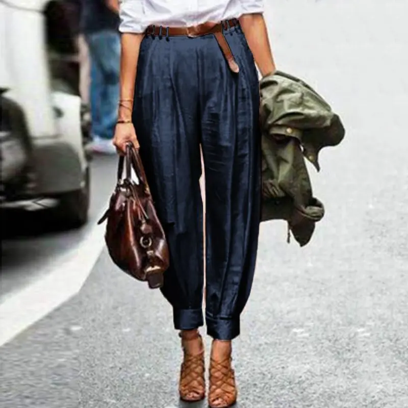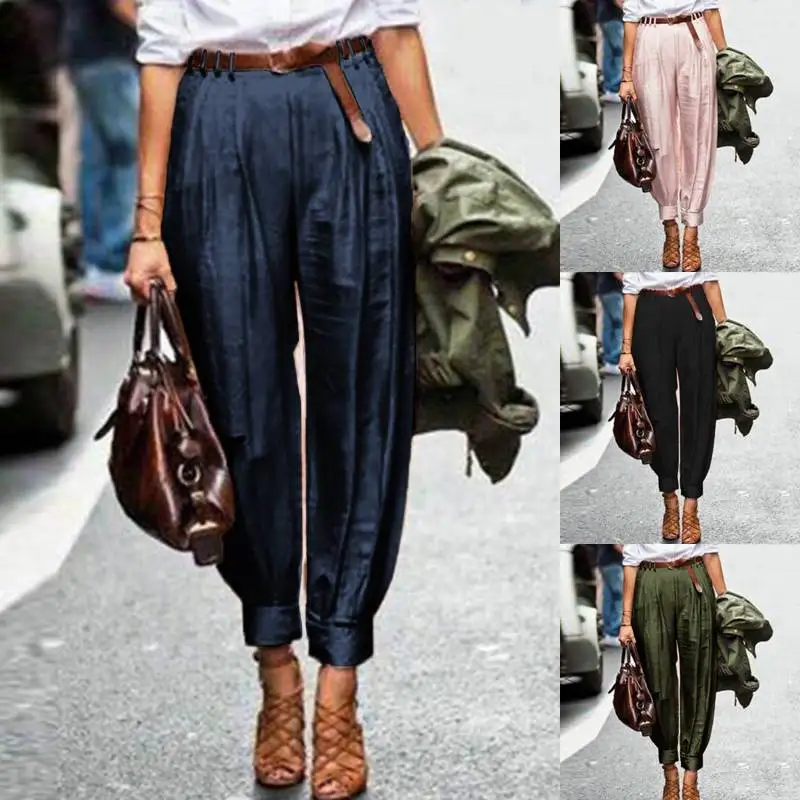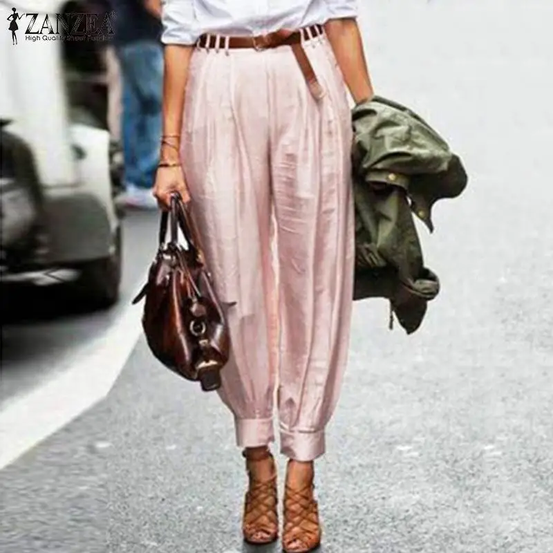 Элегантные однотонные офисные рабочие брюки ZANZEA, летние женские брюки с высокой талией и фонариками, женские свободные шаровары, повседневные брюки с мятой
