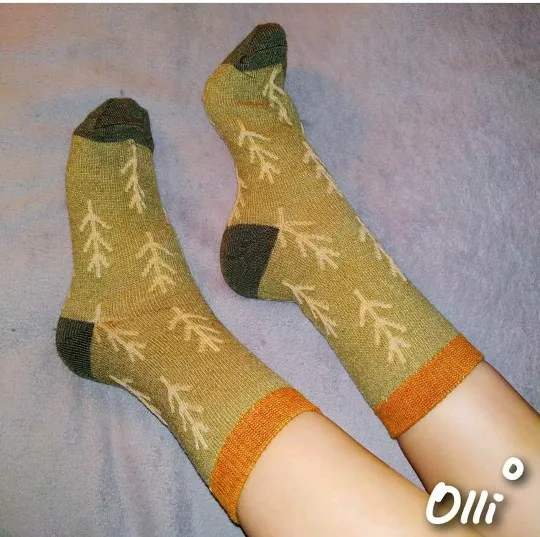 Я взяла зелёные. Все таки елки. Резинка горчичного цвета. В вот на пятке и носке темный зелёный По всему периметру расположены светлые ёлочки, они объемные. Состав не известно. У продавца заявлено, что хлопок. Но что-то не похоже, здесь акрил и думаю не большой процент шерсти С внутренней стороны все максимально прилично. Практически без особо торчащих ниток. Резинка здесь обычная. Она не тугая и тянется хорошо На пальцах шов аккуратный. Что с лица, что с обратной изнаночной стороны, все ровно и не давит У меня нога 36 размера. Так вот, носки довольно свободны. Так что смело модн брать на больший размер и на широкую ногу тоже будет отлично.