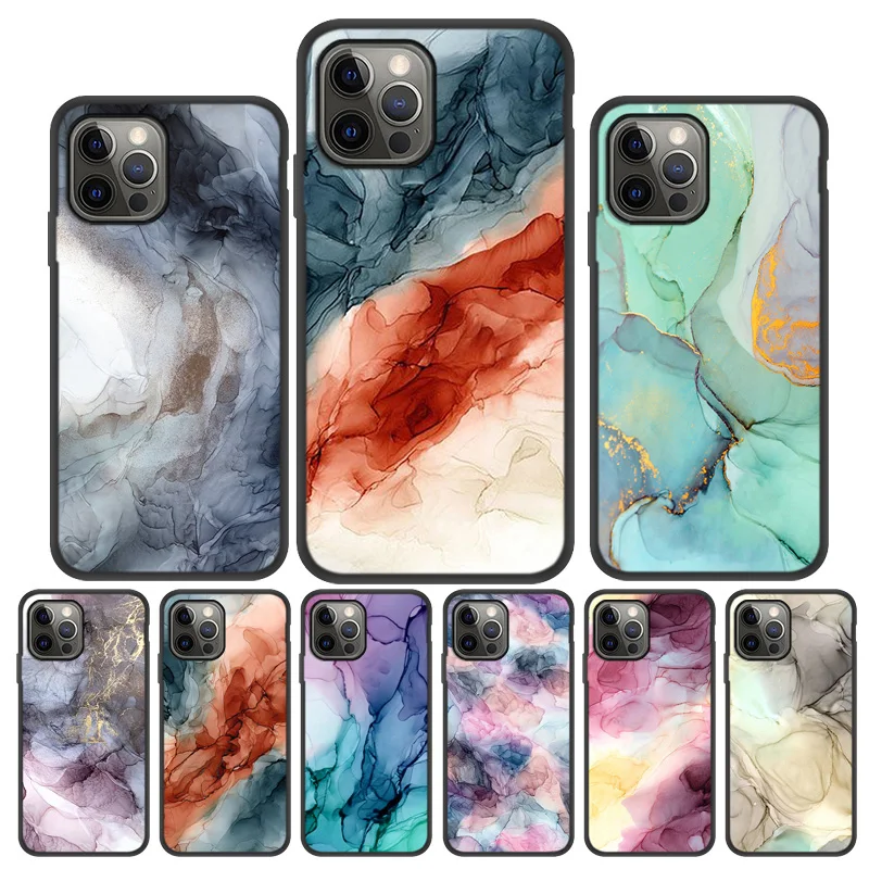 Мраморный чехол для iPhone 11, чехол для iPhone 12 Pro Funda 13 Pro XR XS Max X 7 8 Plus 6S SE 2020, мягкий силиконовый чехол с акварельным принтом