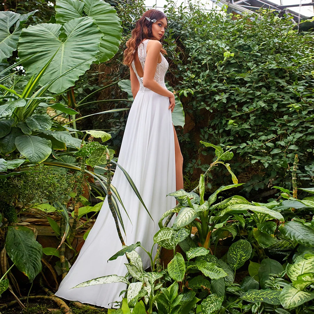 Очаровательный размера плюс шифоновое свадебное платье 2021 с О-образным вырезом, без рукавов, с кружевными аппликациями, трапециевидной формы свадебное платье с низким вырезом на спине и выпускного вечера; Robe De Noiva