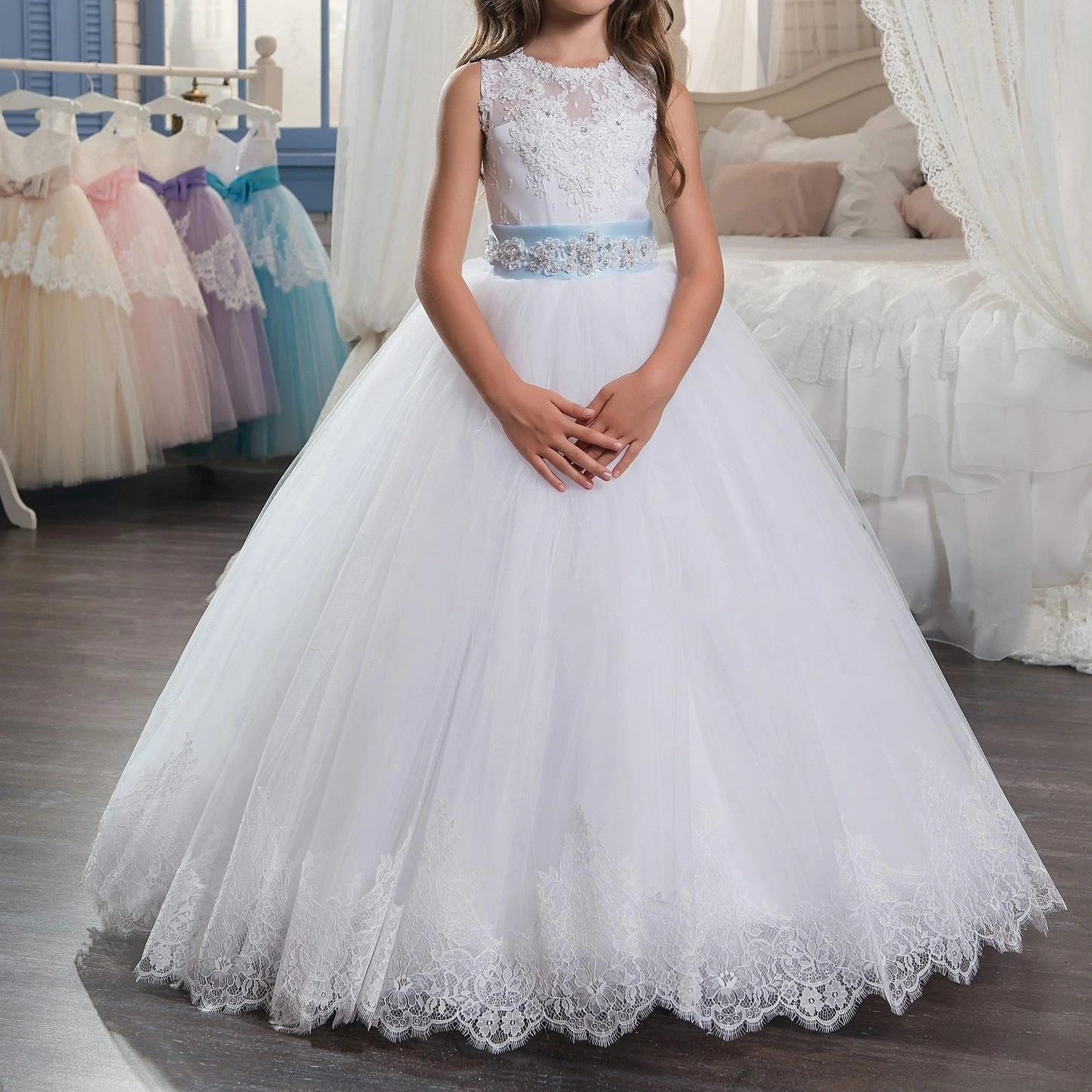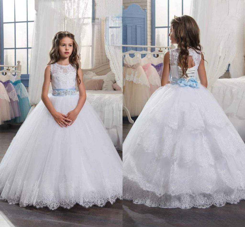 Платья для девочек для первого причастия, кружевные милые белые пла...