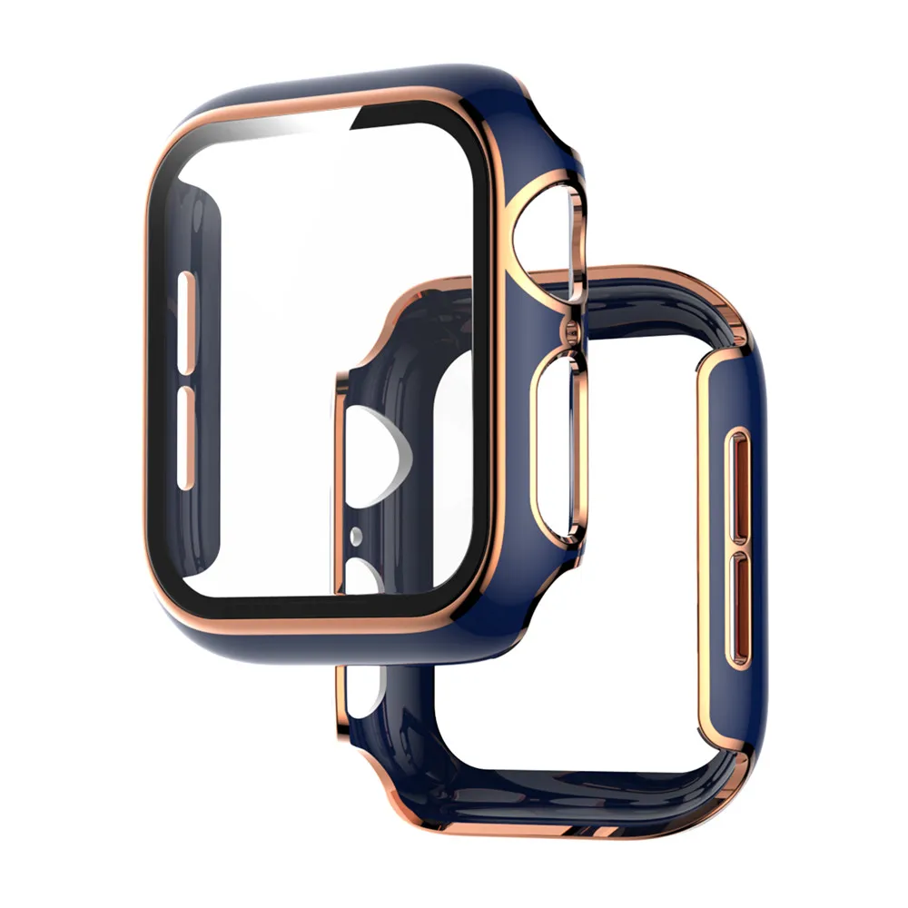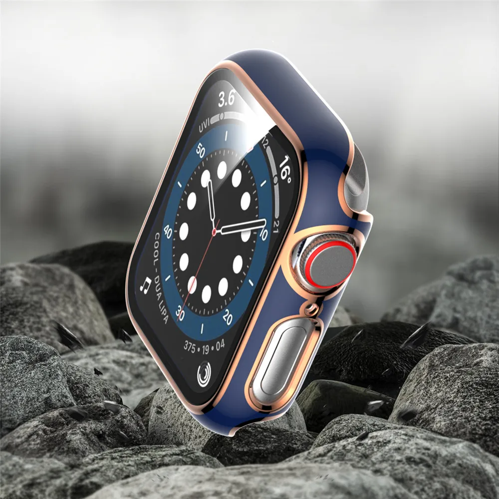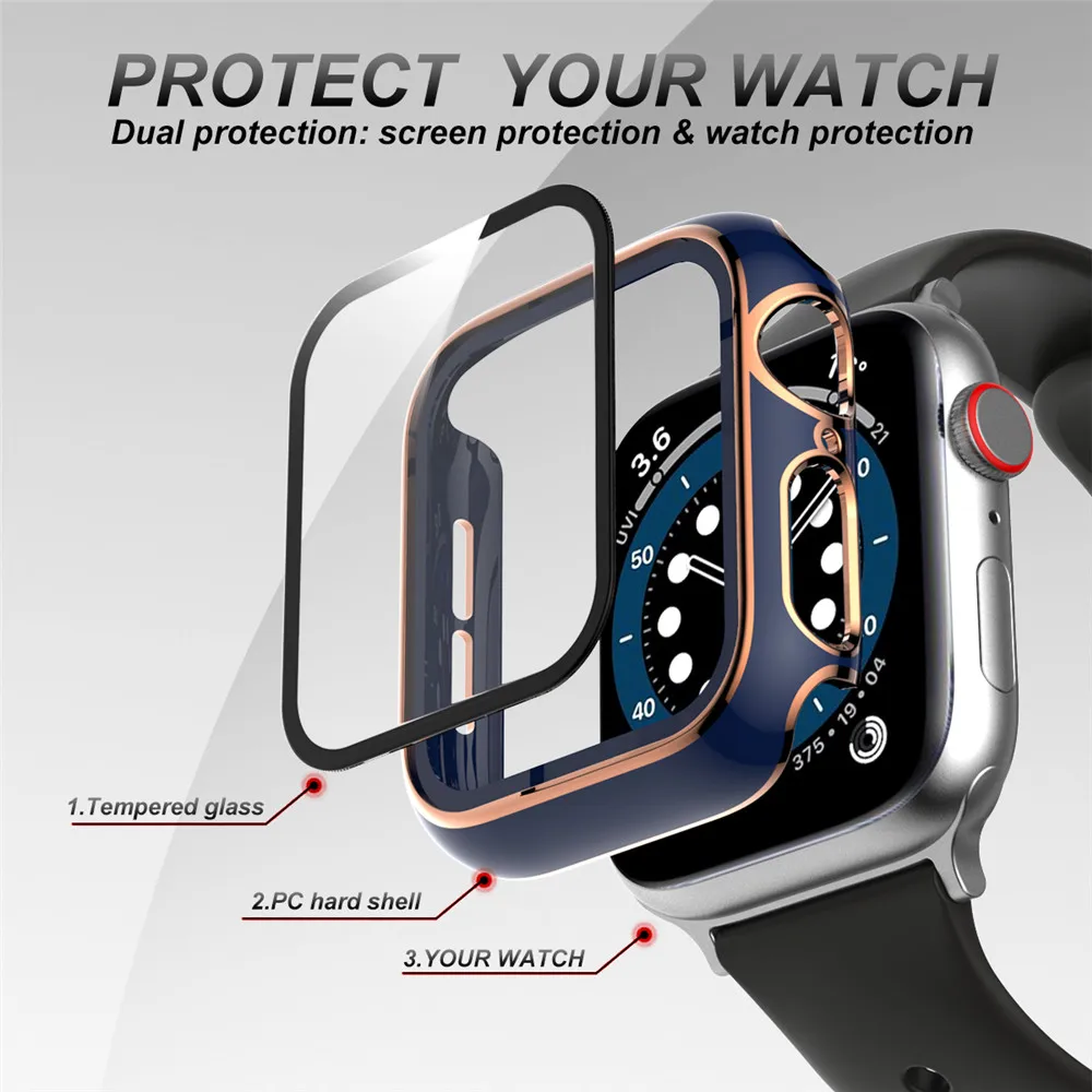 Двухцветная стеклянная пленка с покрытием из поликарбоната для Apple Watch, чехол серии 6 SE, 5, 4, 3, защитный бампер для экрана Iwatch 40 мм, 44 мм, 38 мм, 42 мм
