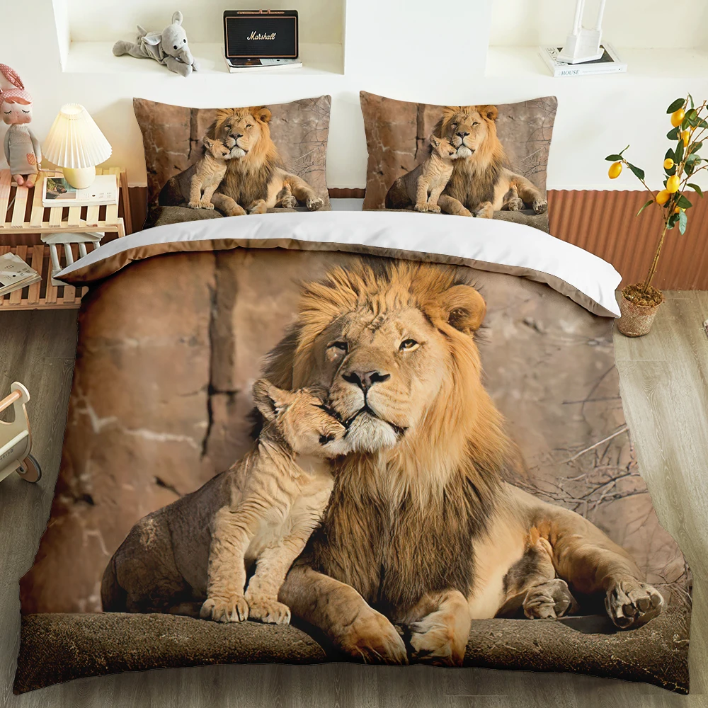 Наволочка, мягкий комплект постельного белья с 3D принтом, королева, Кинг, одиночный Лев, джунгли, дикие животные, Комплект постельного белья, спальня, домашний декор