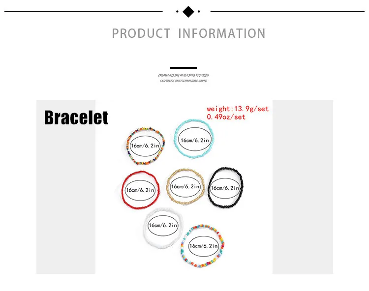 7 шт.компл. Популярные Модные Разноцветные богемные браслеты ручной...