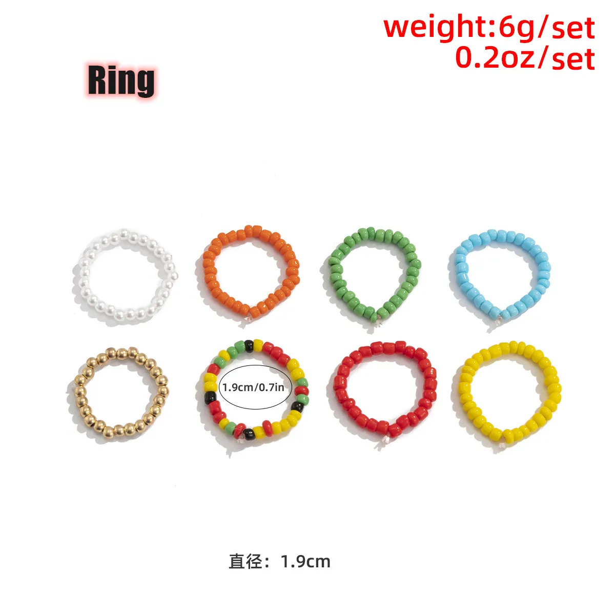 8 шт., летнее разноцветное Bobemia кольца Регулируемый бусы, кольцо...