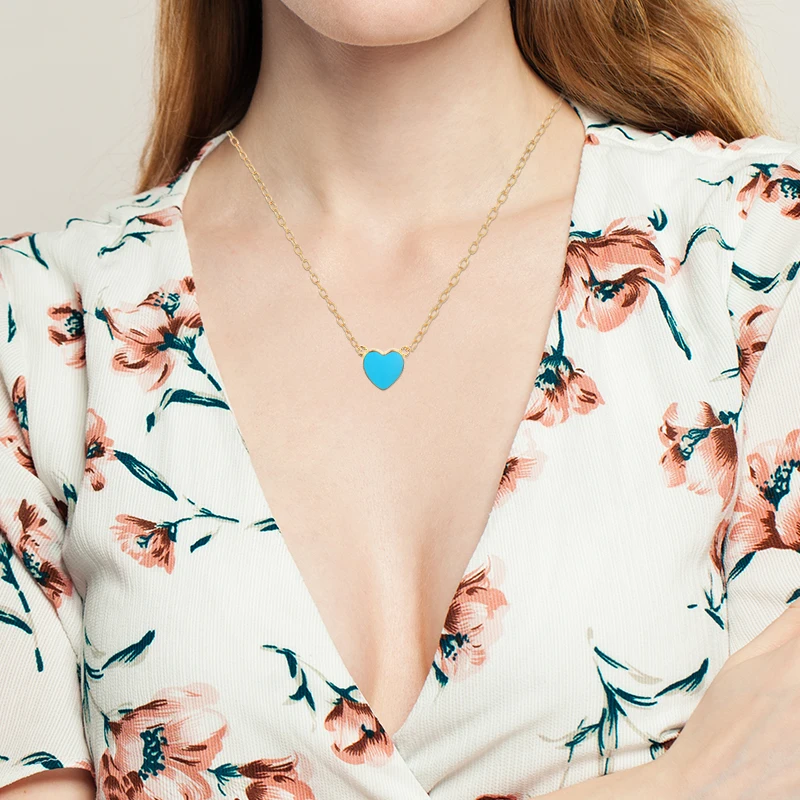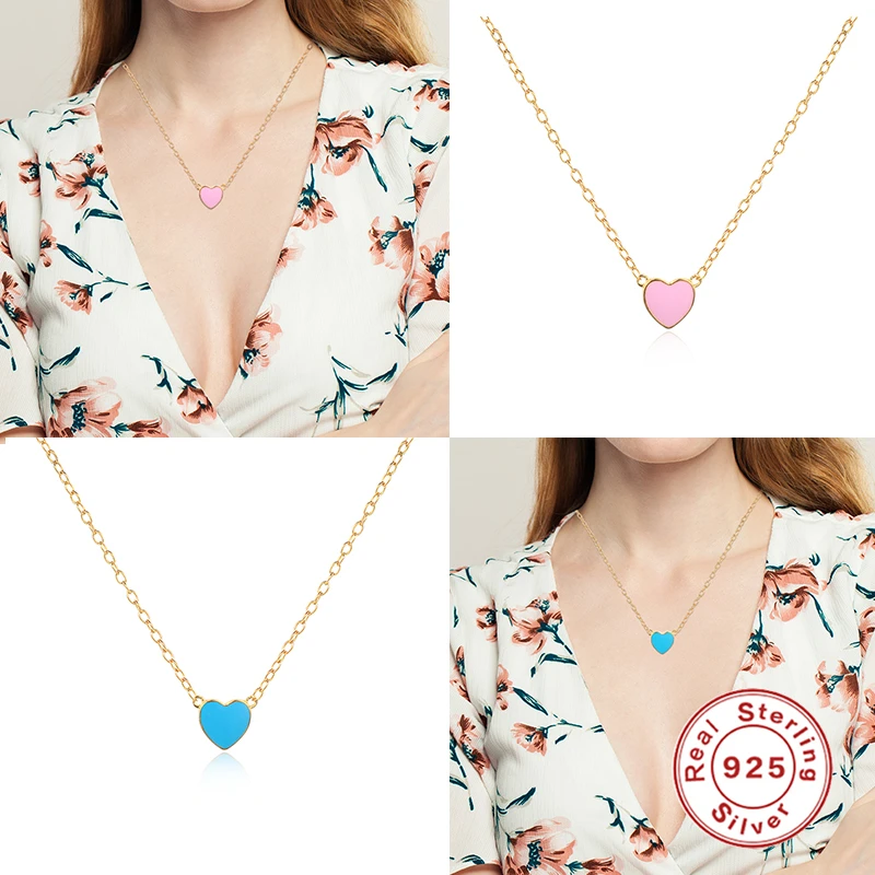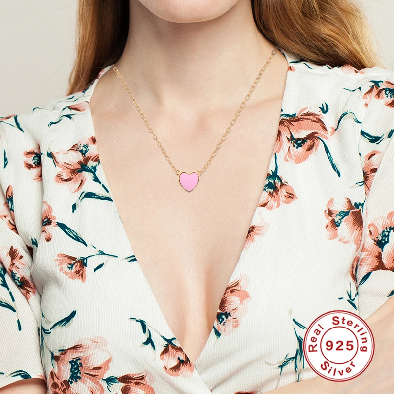 Aide 925 стерлингового серебра в форме сердца Эмаль ожерелье для же...