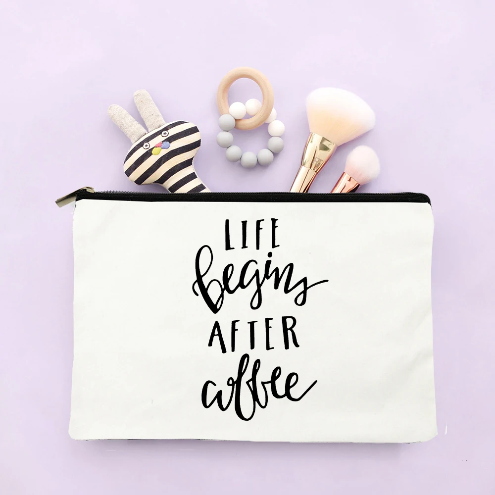 Чехлы для макияжа с принтом «Первый кофе», женские модные косметички Harajuku, органайзеры для макияжа, эко многоразовые повседневные дорожные сумки на молнии
