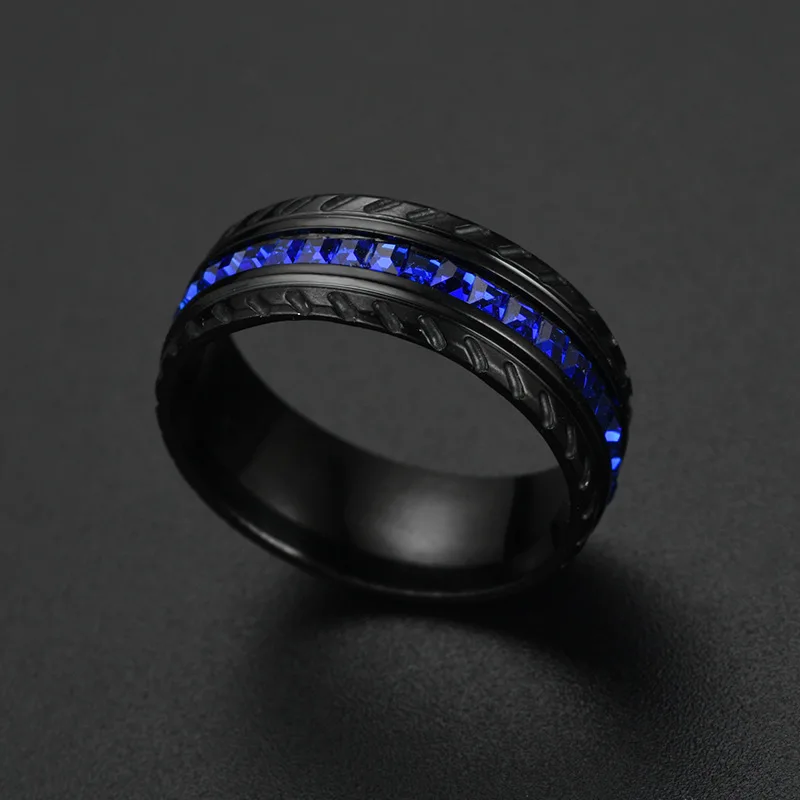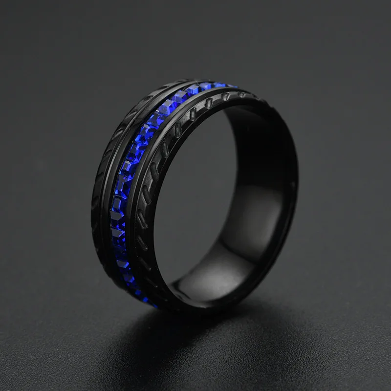 Обручальное кольцо из титановой стали с синим цирконом, 8 мм