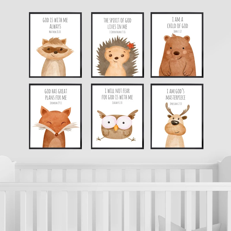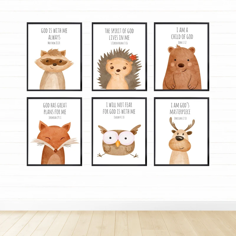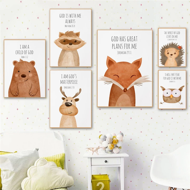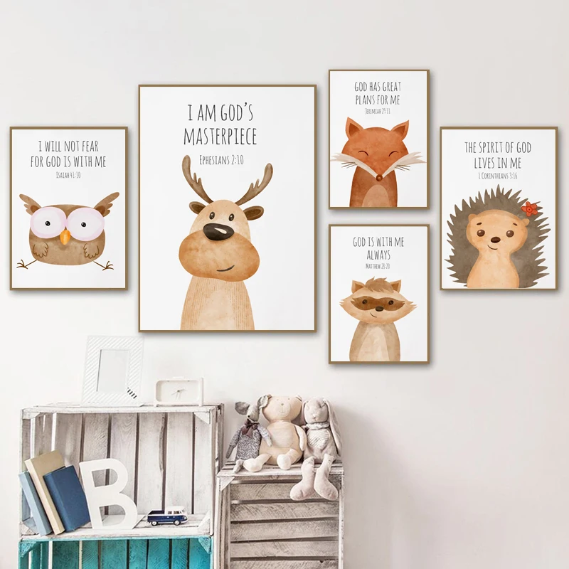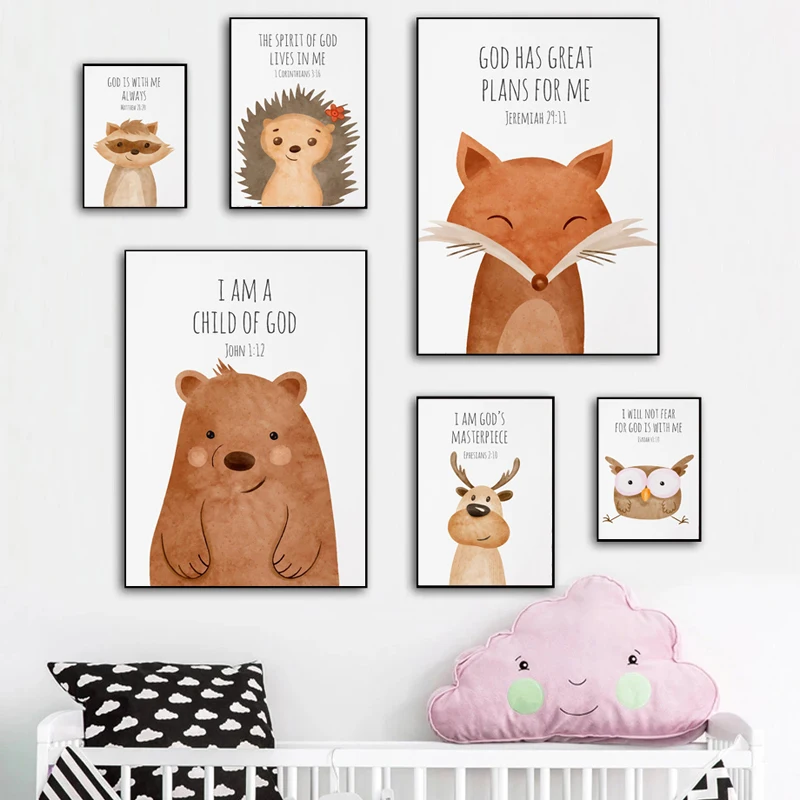 Картина с изображением ежа, лисы, совы, Детские стихи, плакат, печать на холсте, Настенная картина, скандинавский декор для детской спальни