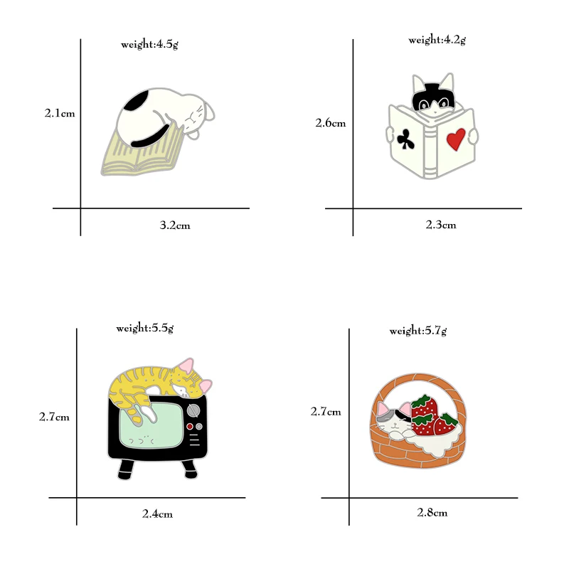 Броши в виде милых животных, мультяшная корзина, кошка, телевизор, ...